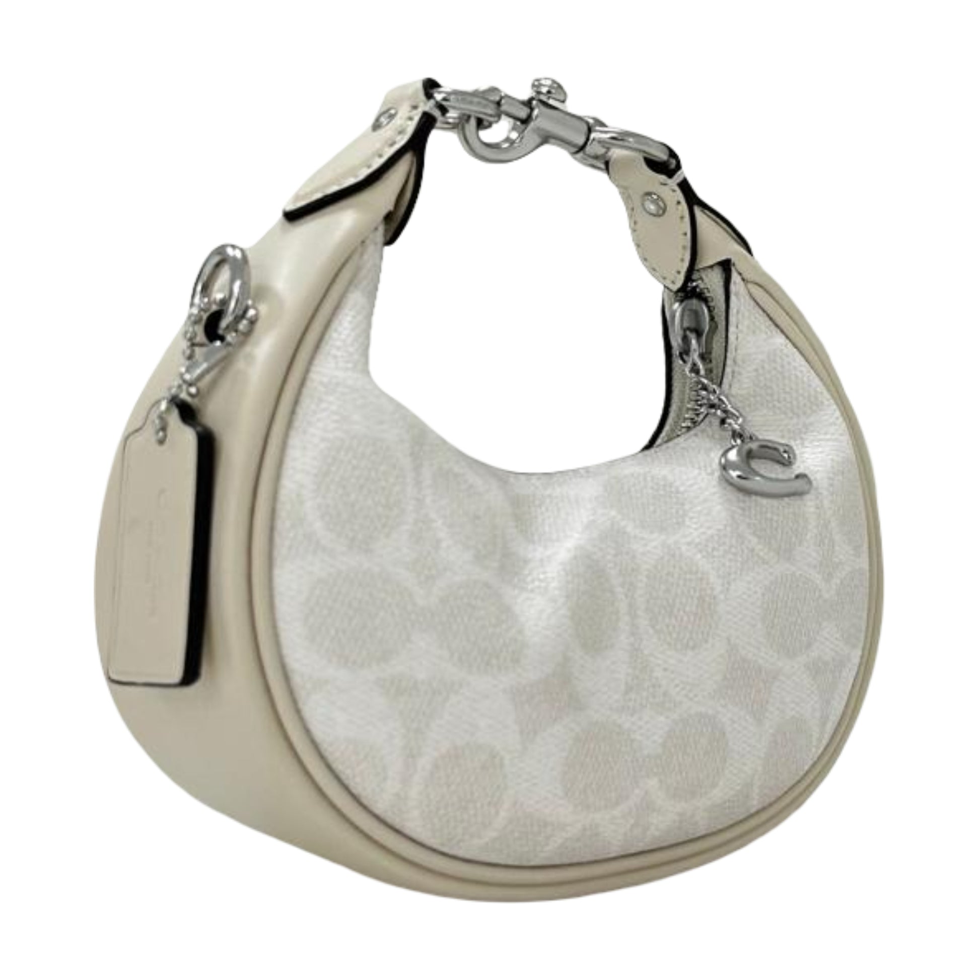 The Coach Jonie Bag In Signature Canvas - Silver/White Chalk is a refined and stylish piece, ideal for those who love a minimalist design with a luxurious edge—perfect for elevating any outfit.