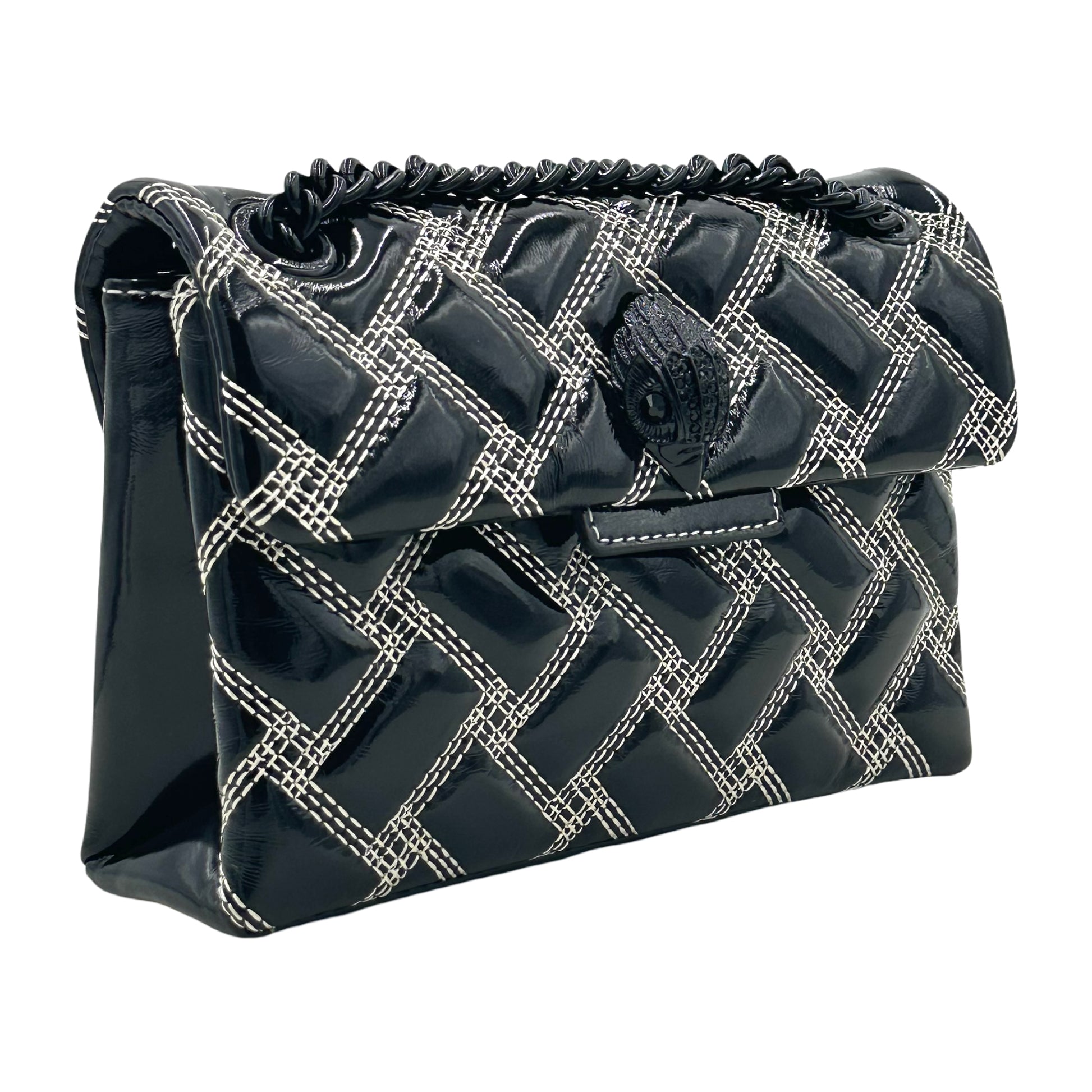 Sleek, stylish, and bold, the Kurt Geiger London Mini Kensington Drench Contrast Stitching Crossbody Bag in Black is designed to make a refined statement. Featuring tonal contrast stitching and all-black hardware, this compact piece offers modern edge with classic Kensington charm.
