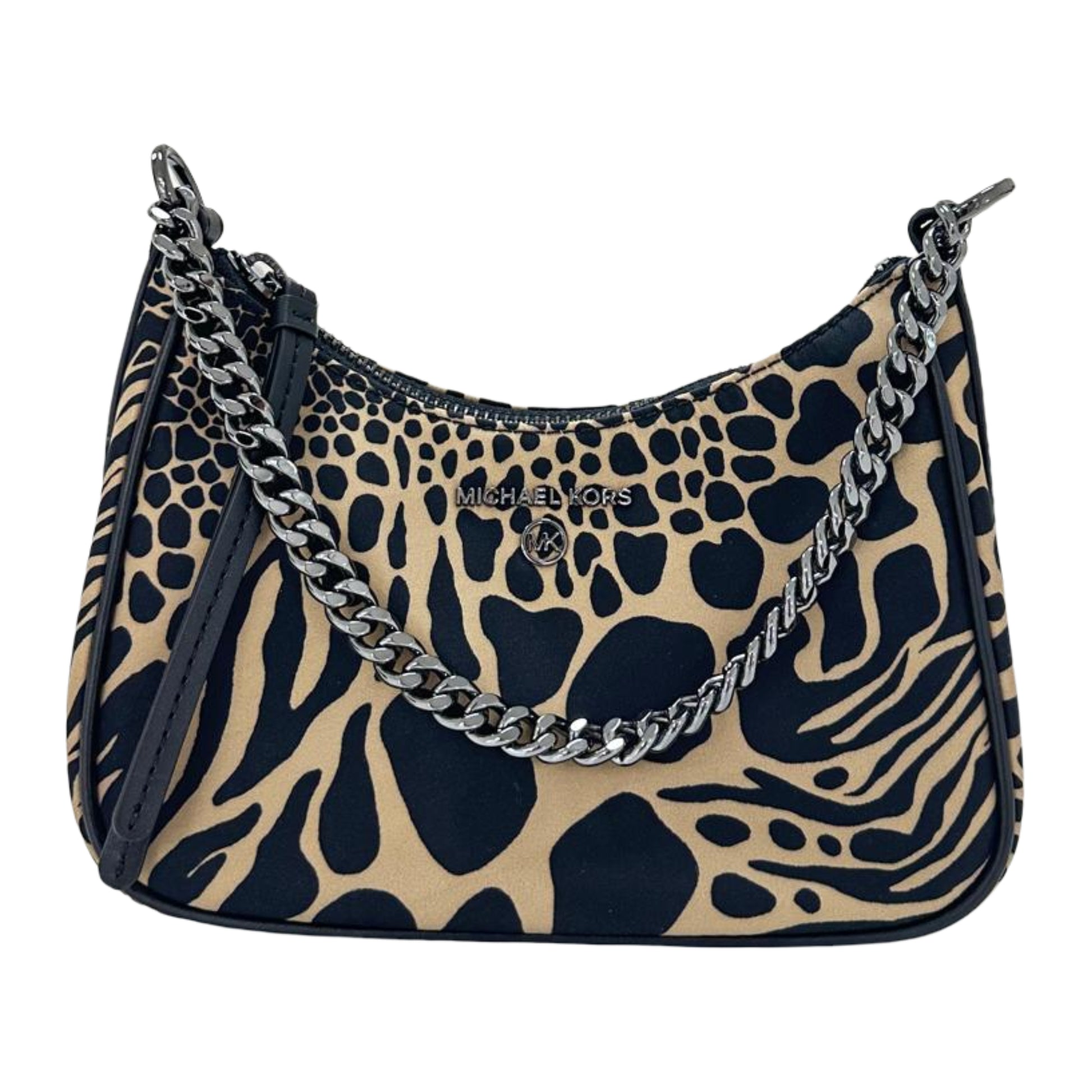 The Michael Kors Jet Set Charm Small Animal Print Nylon Shoulder Bag is a perfect blend of functionality and fashion, designed to complement your everyday style with ease.