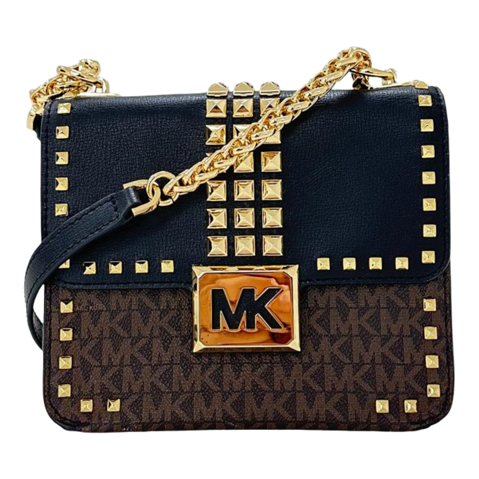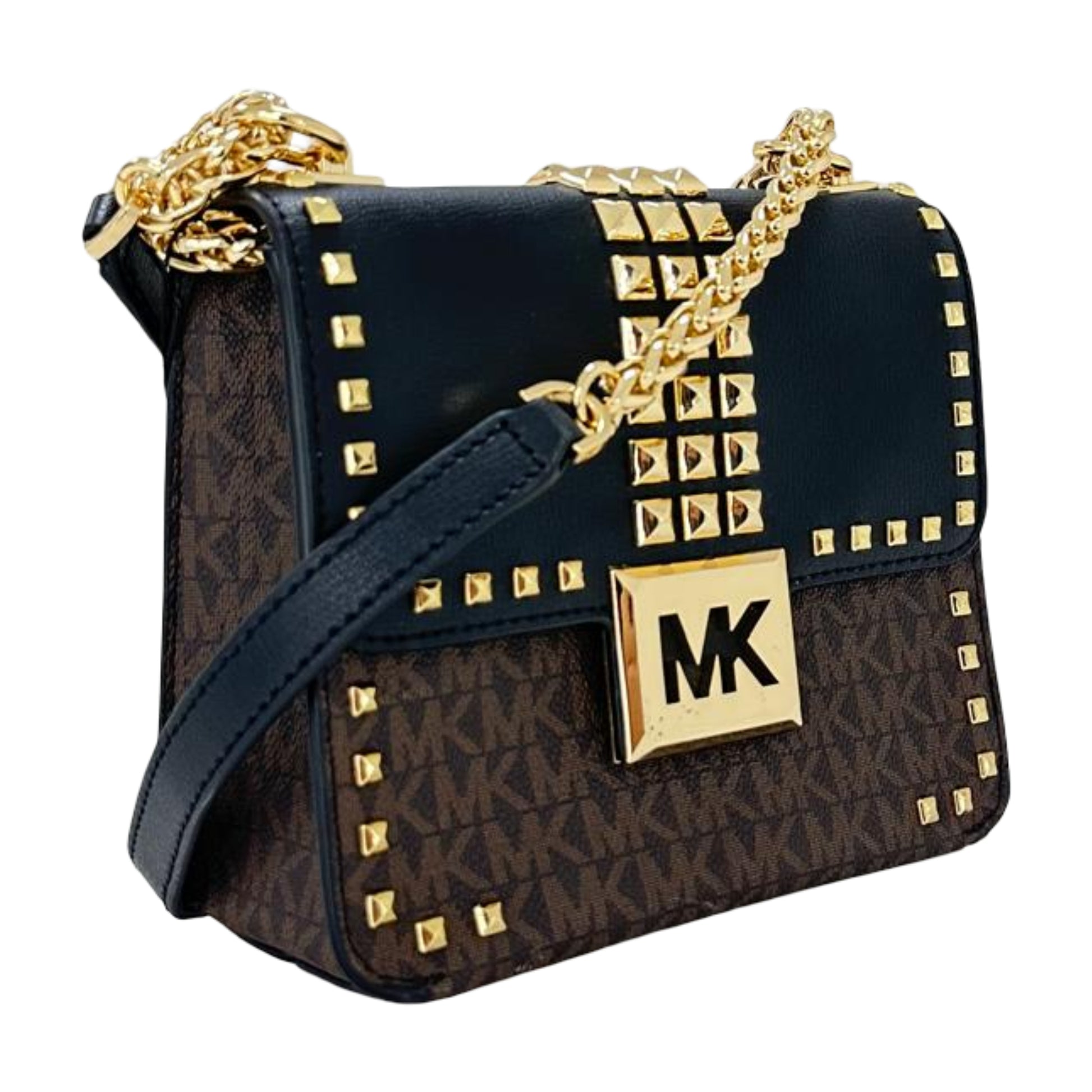 Sleek and stylish, the Michael Kors Sonia Crossbody in Brown/Black is perfect for those who want a chic, compact accessory. Featuring gold hardware, a studded design, and plenty of organizational features, this crossbody will complement any outfit effortlessly.