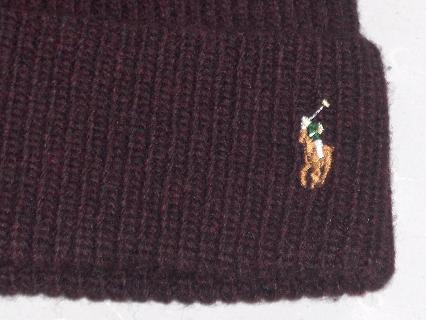 POLO RALPH LAUREN Men's Wool Rib Knit Pony Beanie Hat, Ski Cap, WINE BURGUNDY
