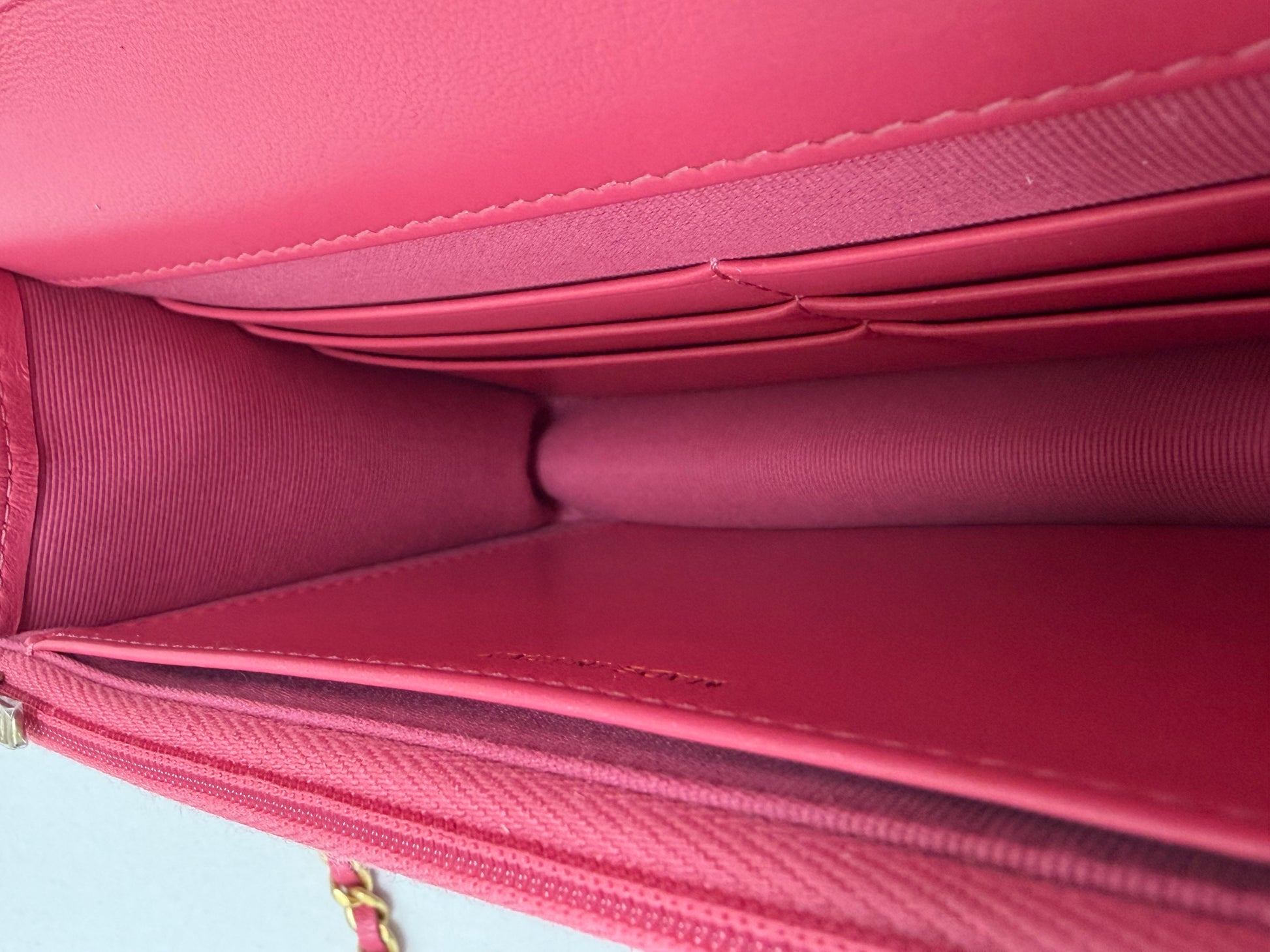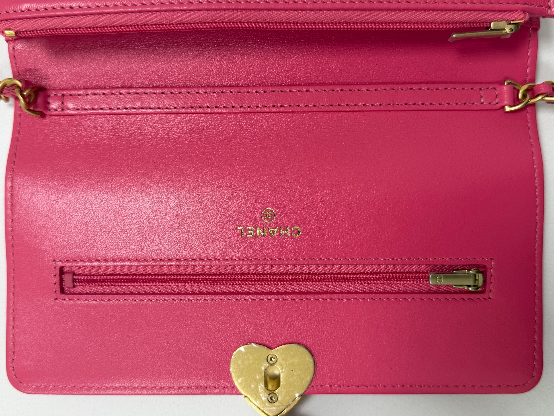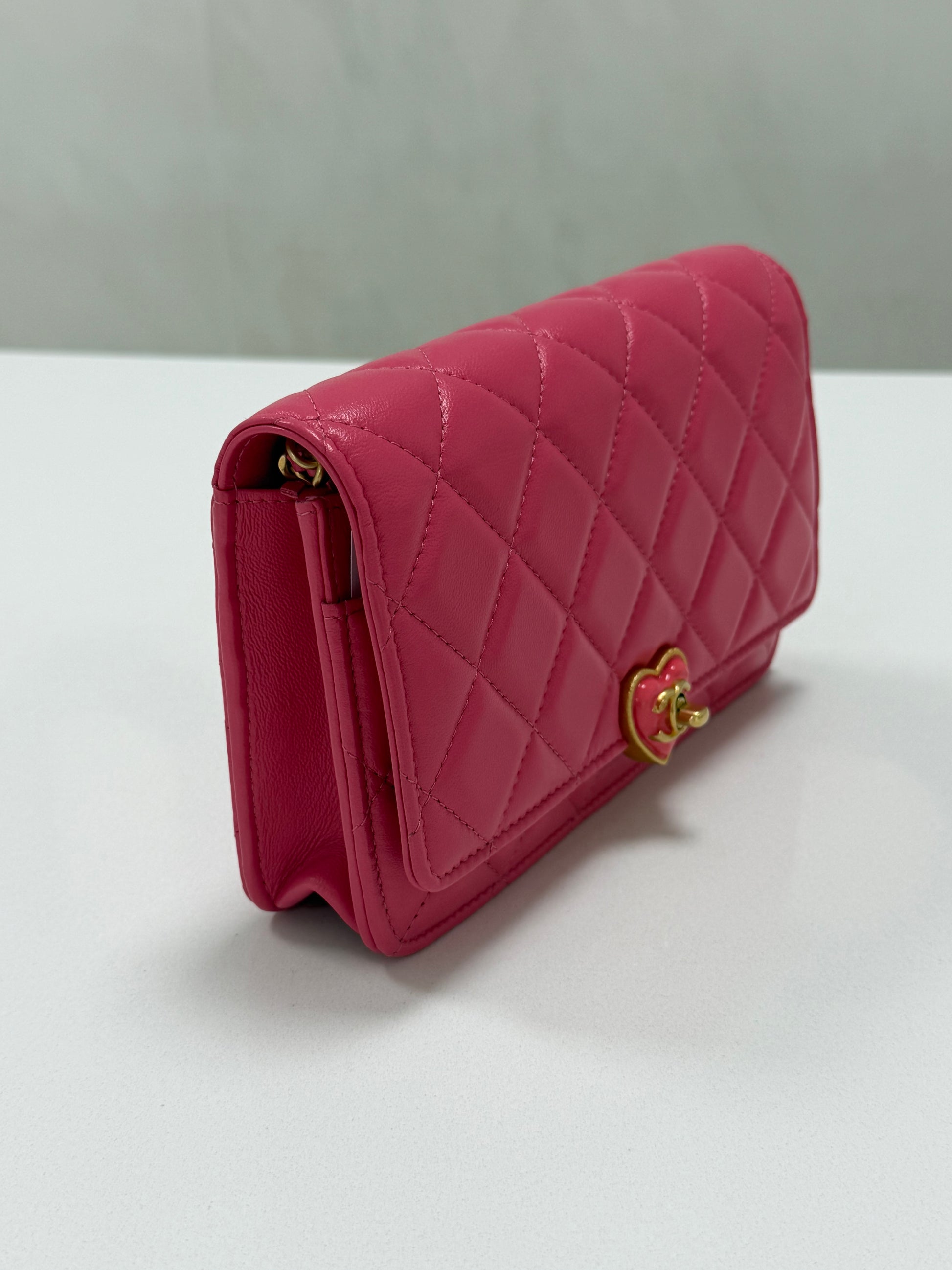 The Chanel Matrasse Heart Chain Wallet Pink is a luxurious and versatile accessory that combines playful charm, practical organization, and timeless Chanel elegance.