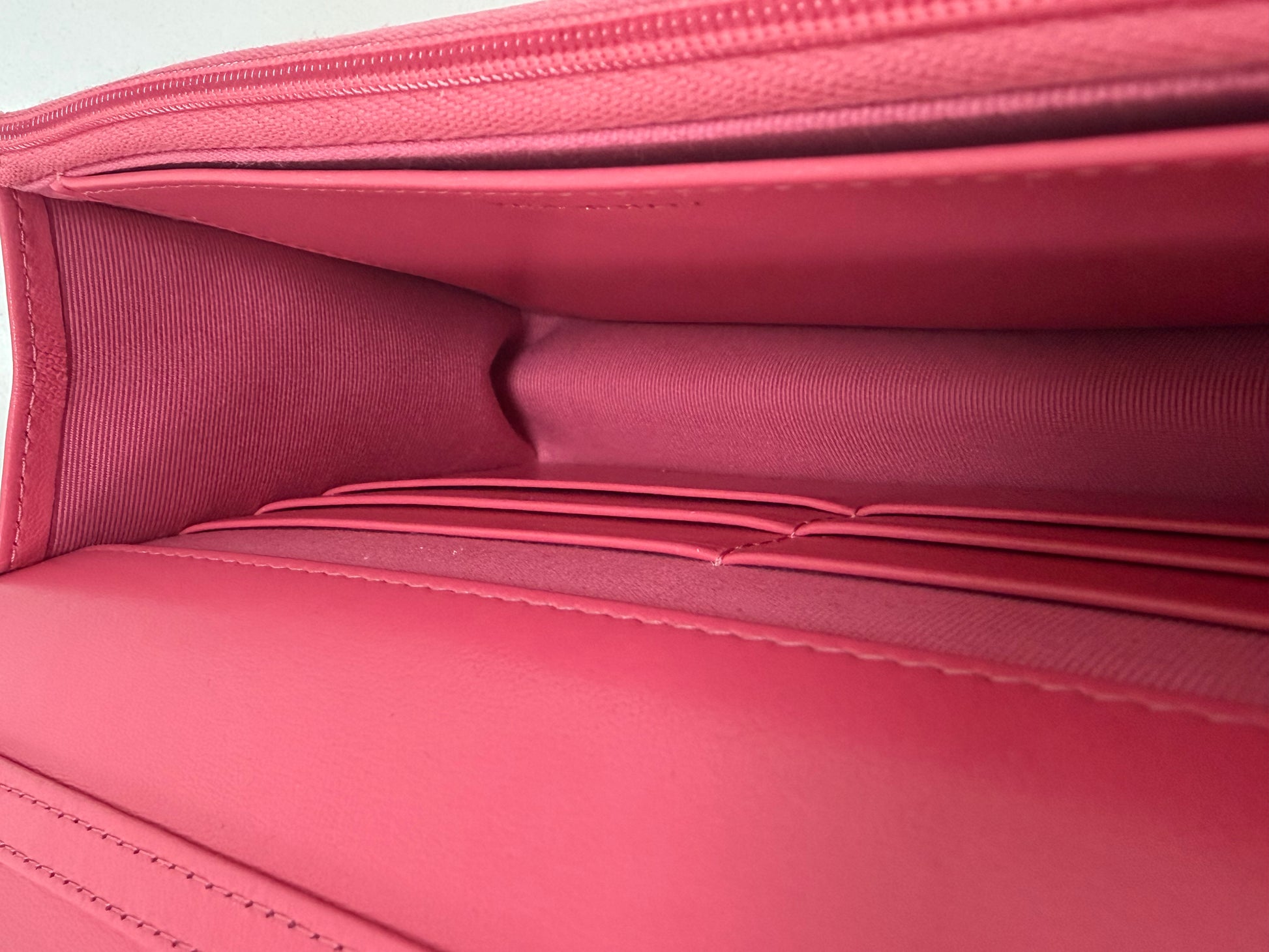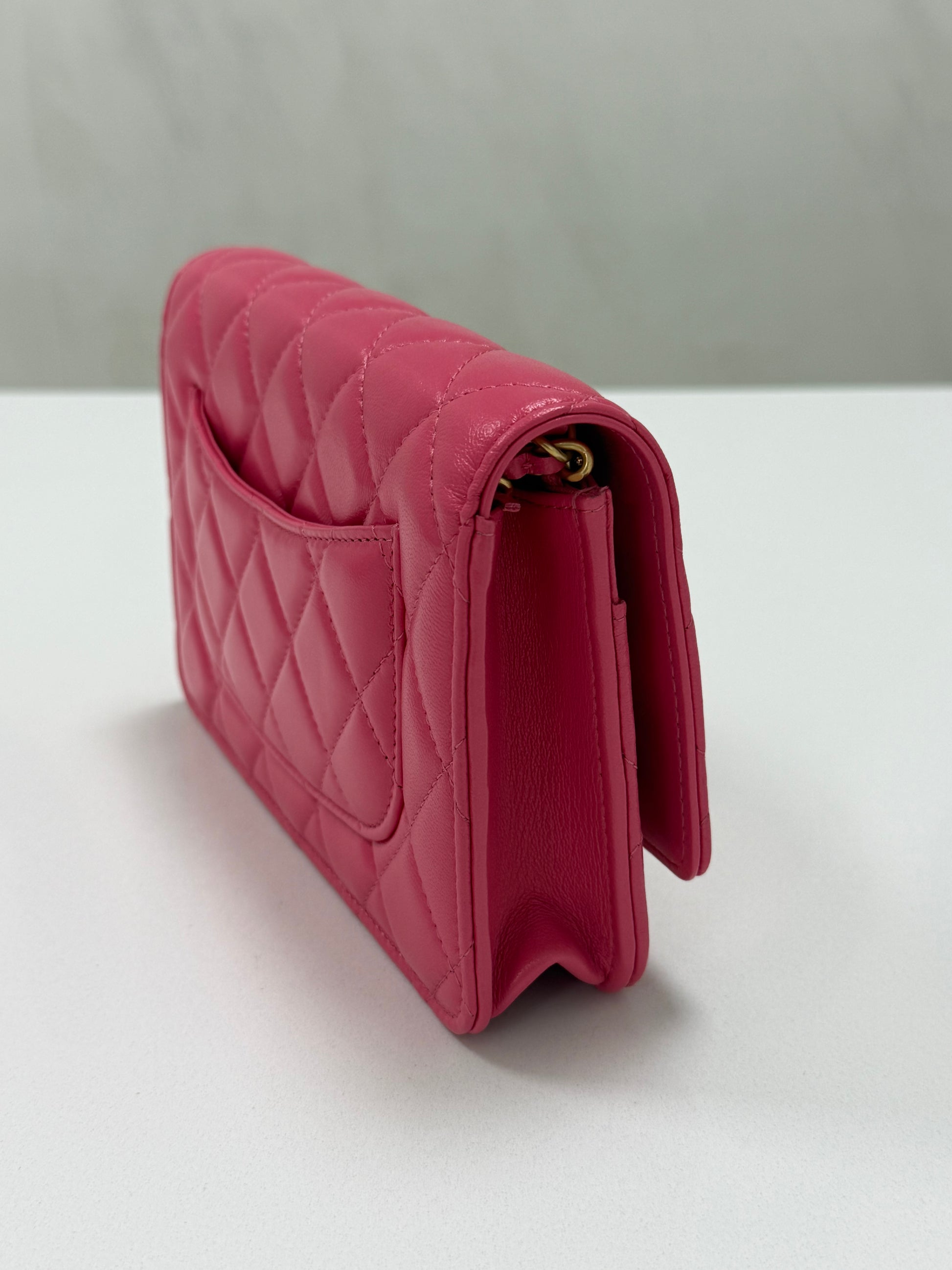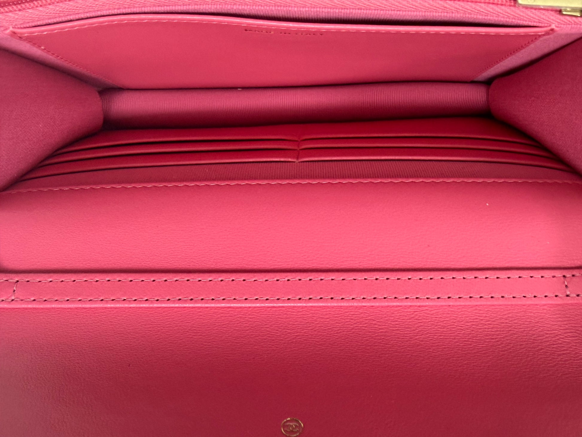 The Chanel Matrasse Heart Chain Wallet Pink is a luxurious and versatile accessory that combines playful charm, practical organization, and timeless Chanel elegance.