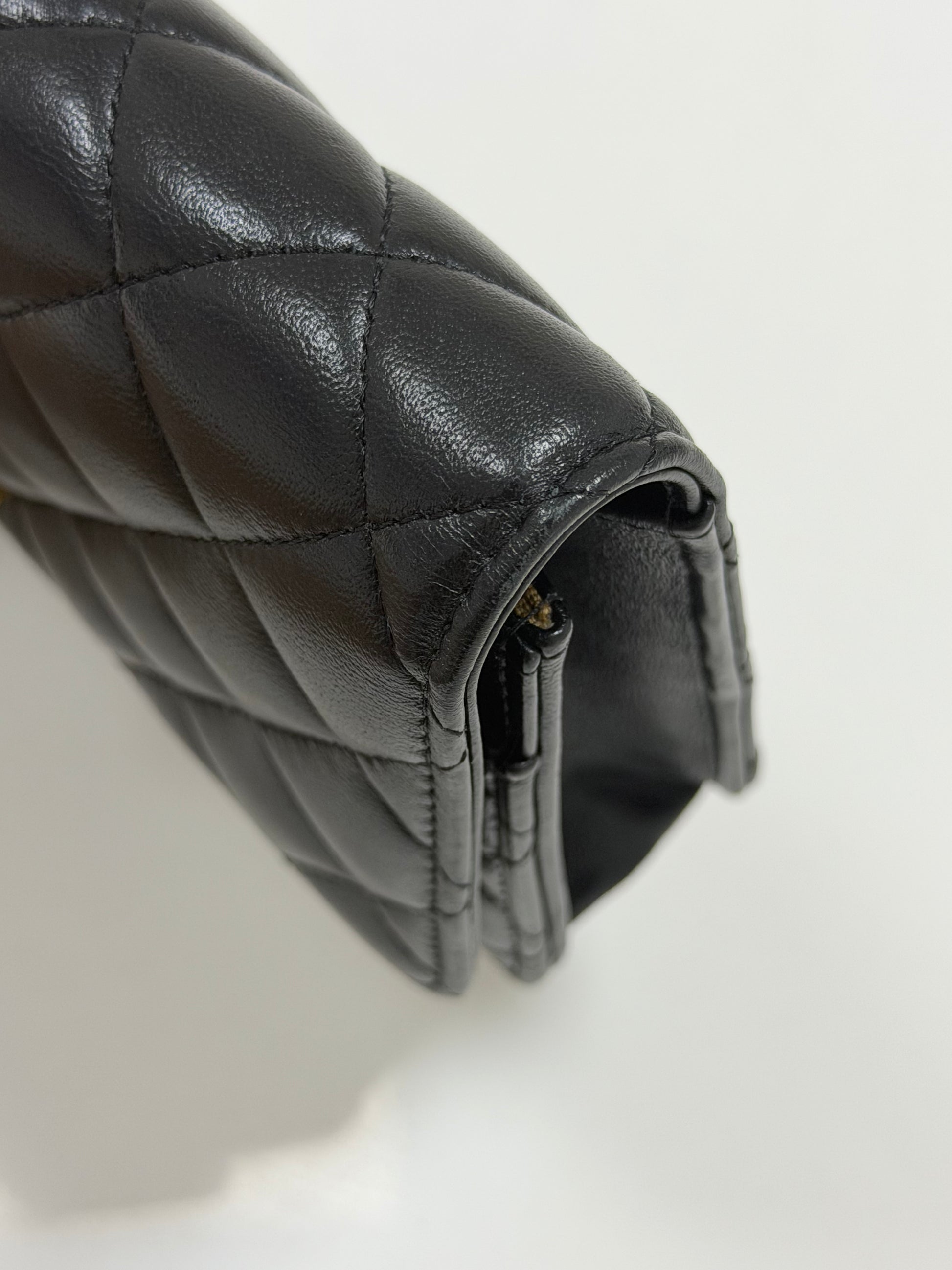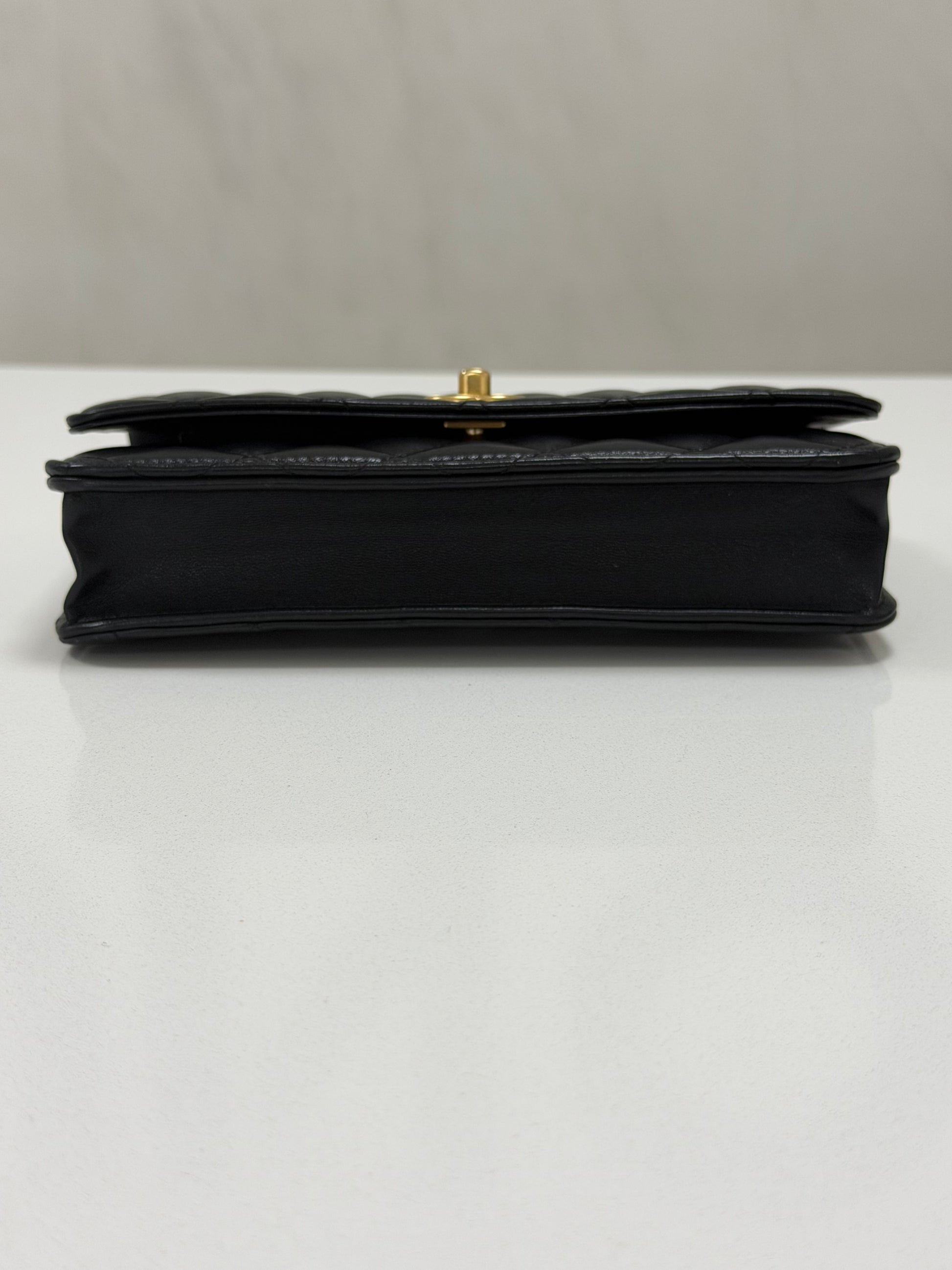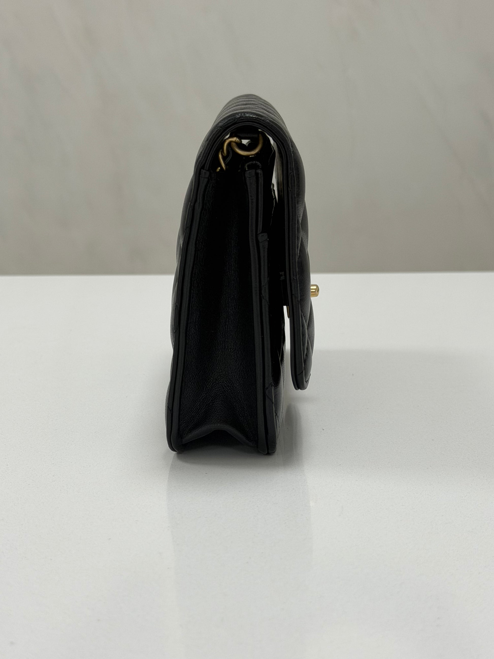 • Diamond-Quilted Black Lambskin Leather: Crafted from soft lambskin leather with signature diamond quilting, offering a sophisticated and luxurious look.