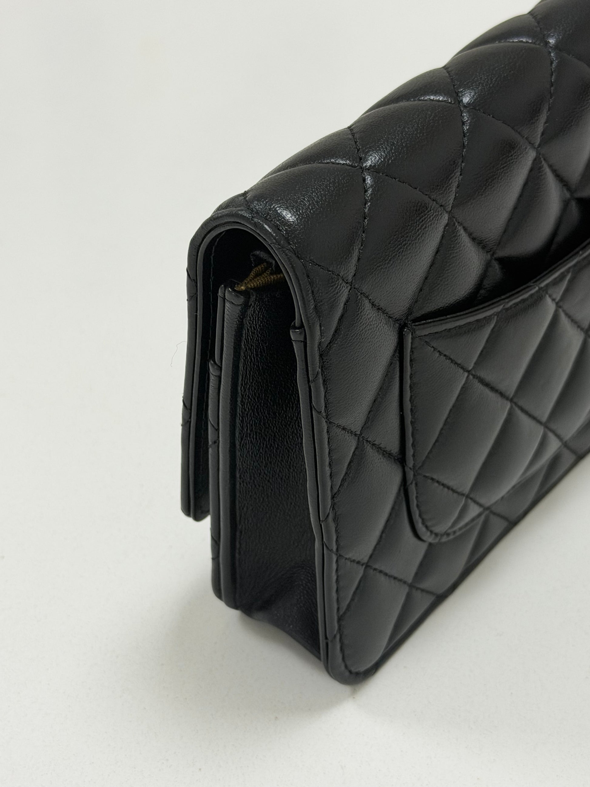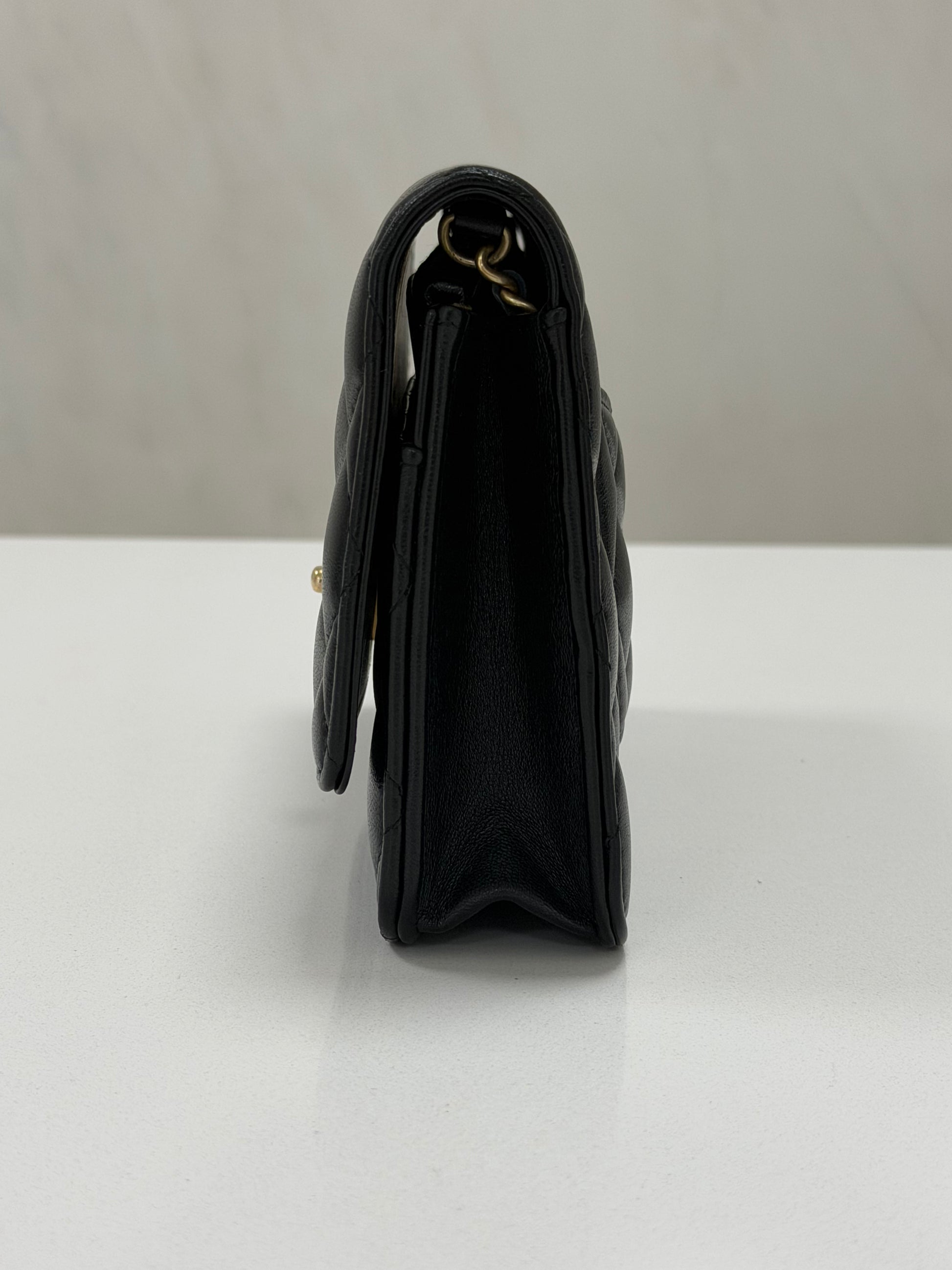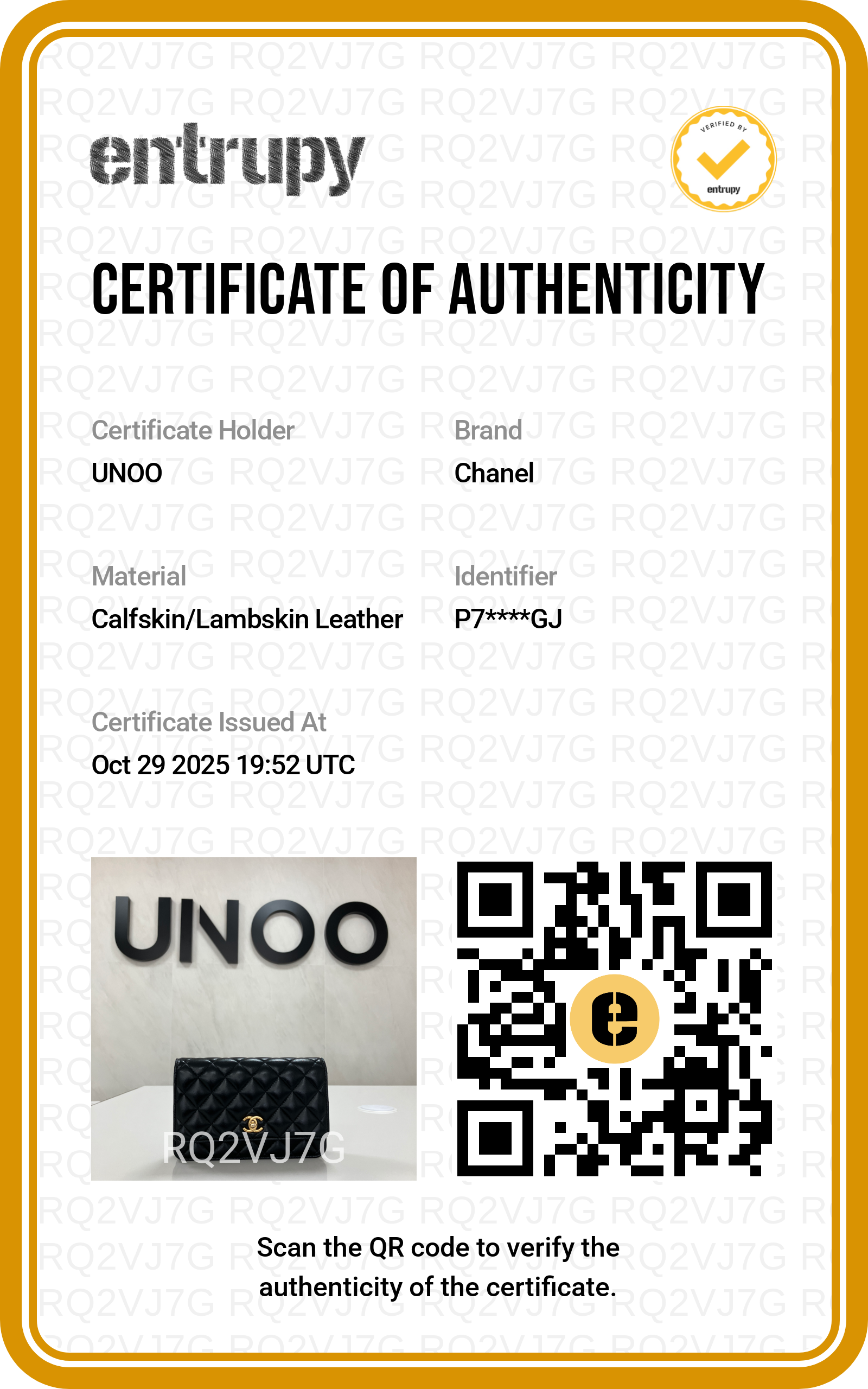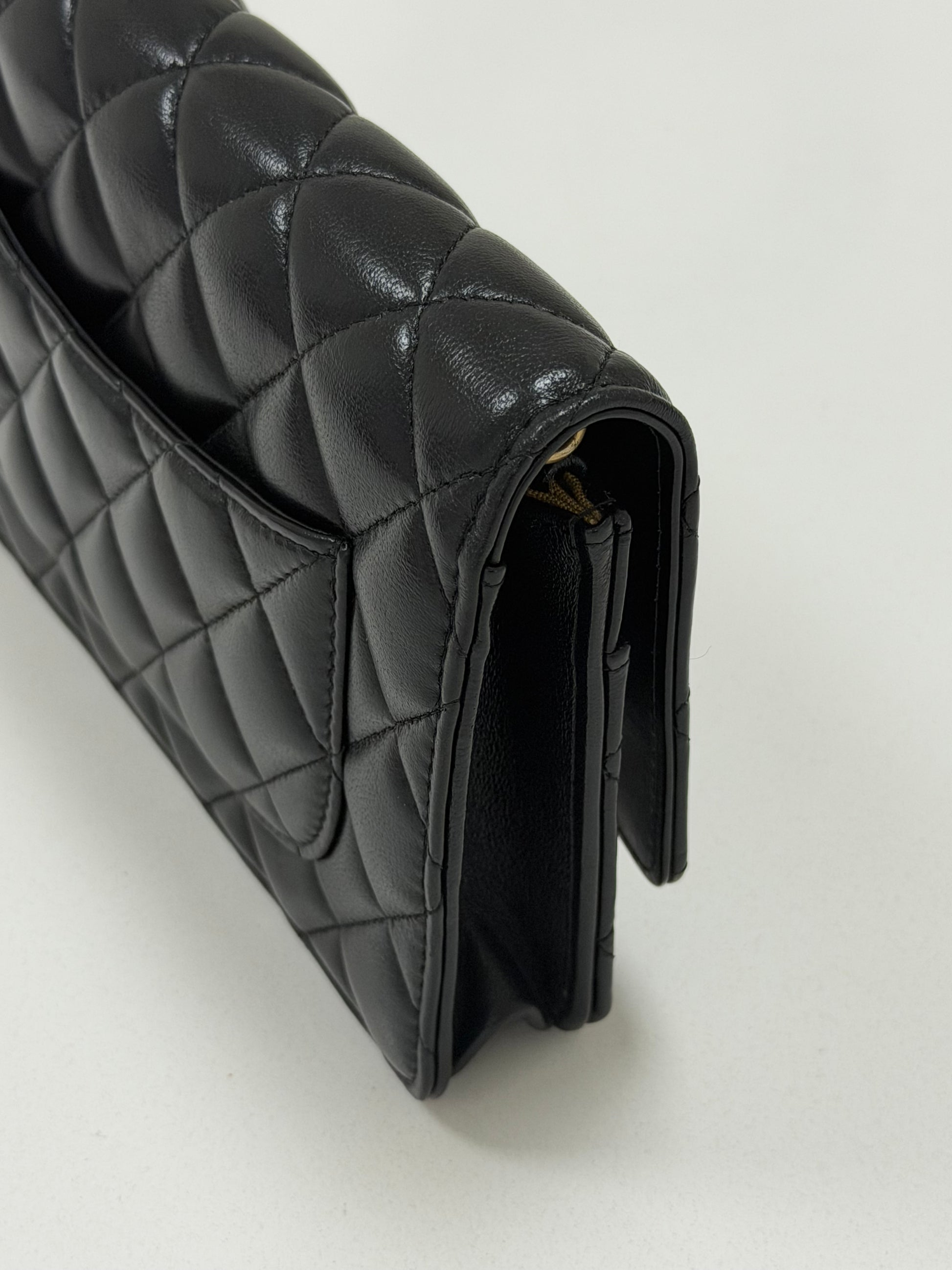 • Diamond-Quilted Black Lambskin Leather: Crafted from soft lambskin leather with signature diamond quilting, offering a sophisticated and luxurious look.