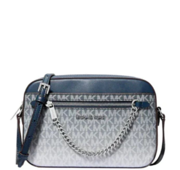 The Michael Kors Jet Set Large Ombré Signature Logo Crossbody Bag in Navy is the ideal blend of signature style and everyday convenience—perfect for elevating your on-the-go wardrobe.