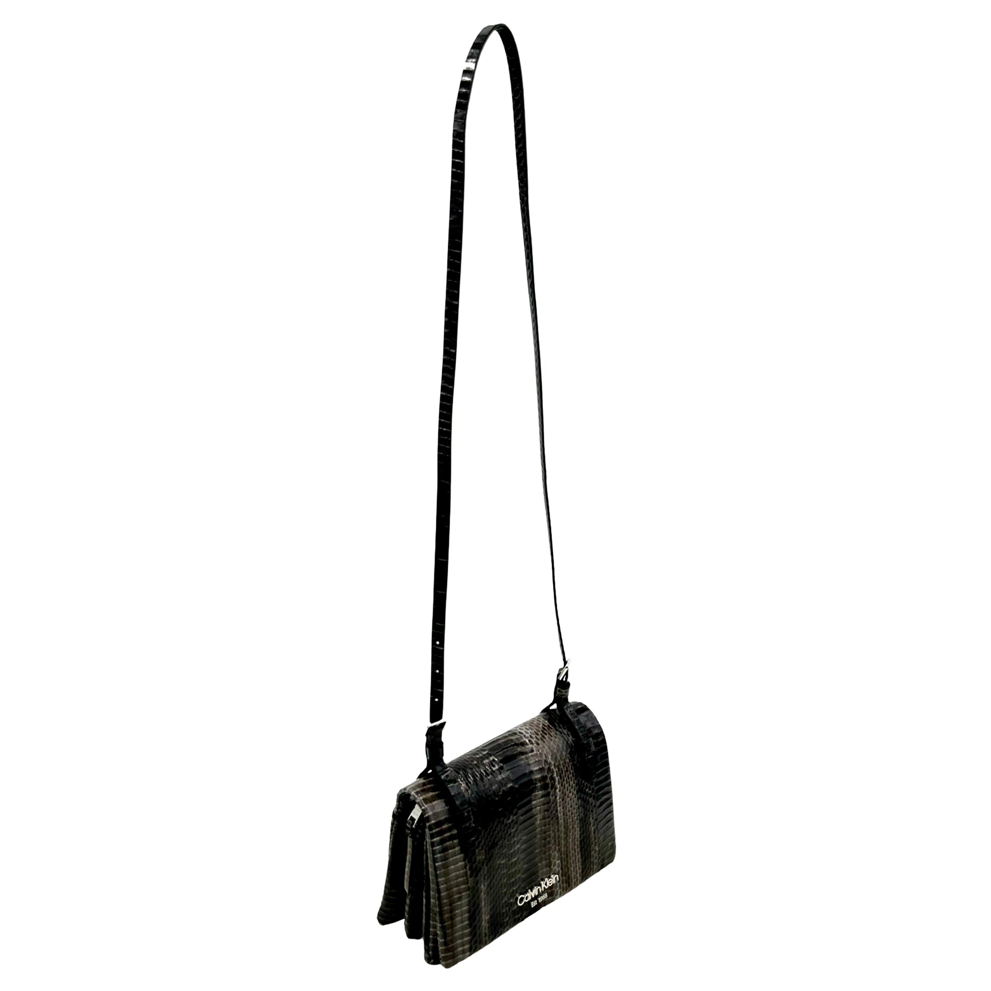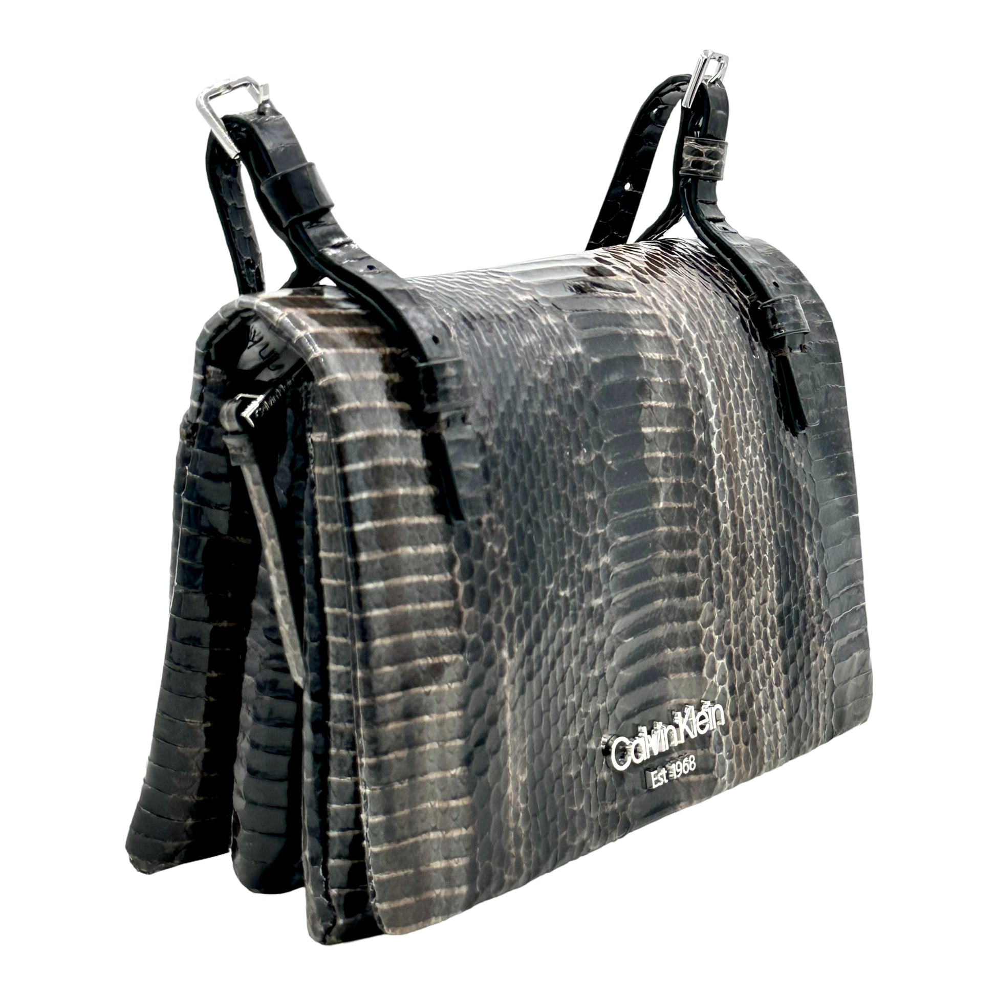 Calvin Klein Penny Crossbody Triple Compartment Python Snakeskin- Black/Brown