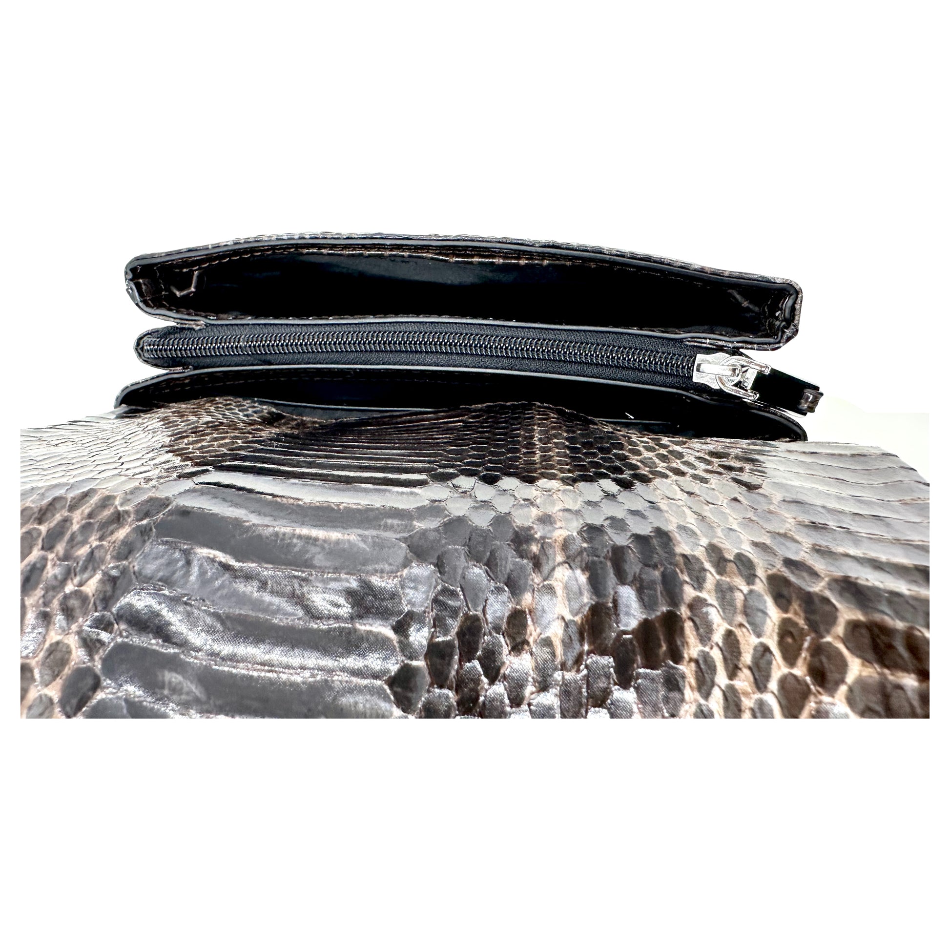 Elevate your everyday style with the Calvin Klein Penny Crossbody Triple Compartment Python Snakeskin Bag in Black/Brown. With a striking embossed texture and sleek design, this crossbody is both fashion-forward and functionally refined.