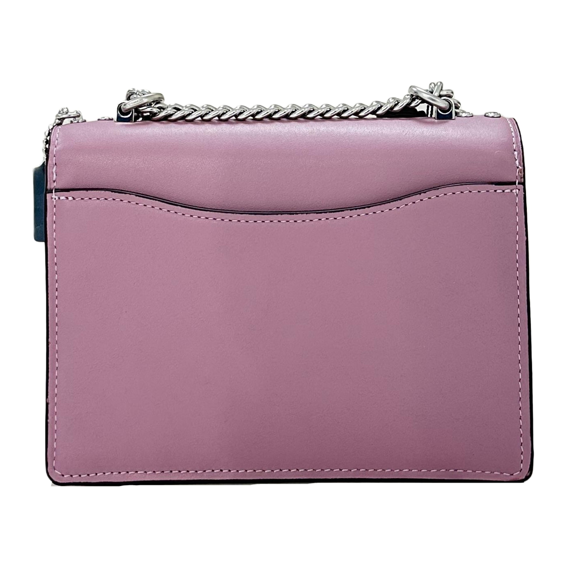 The Coach Mini Klare Crossbody Bag with Floral Appliqué - Silver/Lilac is a beautifully detailed piece that blends soft elegance with everyday practicality—ideal for adding a touch of floral flair to your wardrobe.