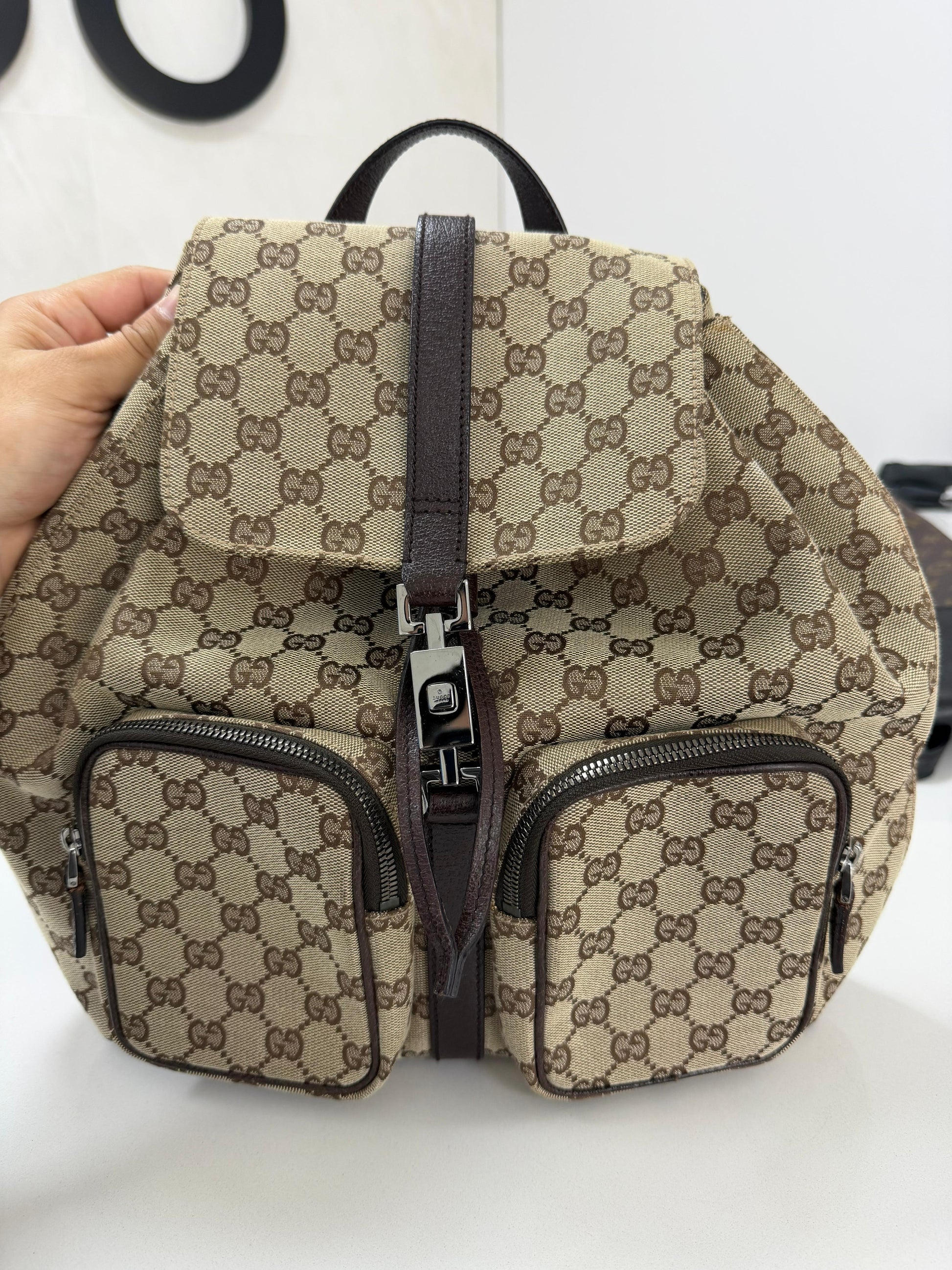 Gucci Jackie Embossed Monogram Canvas Backpack -PRE OWNED