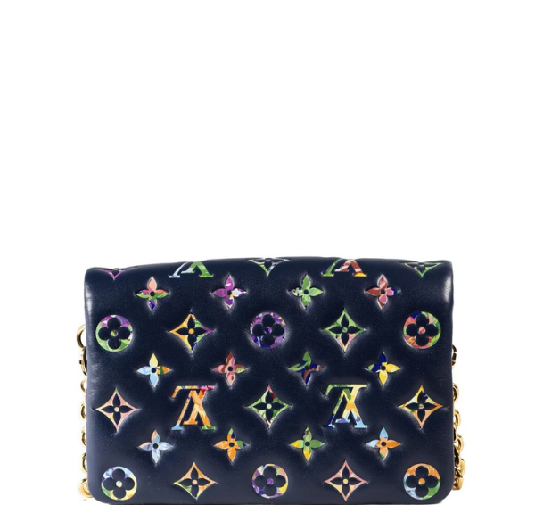 The Louis Vuitton Monogram Garden Pochette Coussin in Navy Blue is more than an accessory; it's an embodiment of luxury and style. Whether you're attending a daytime event or a sophisticated evening affair, this pochette is designed to complement your ensemble with timeless elegance..