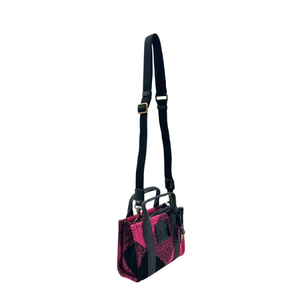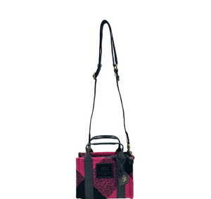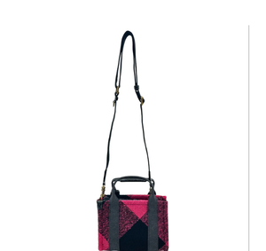 Tweed-Inspired Synthetic Exterior: Crafted from durable synthetic materials with a stylish tweed effect in a black and pink colorway.