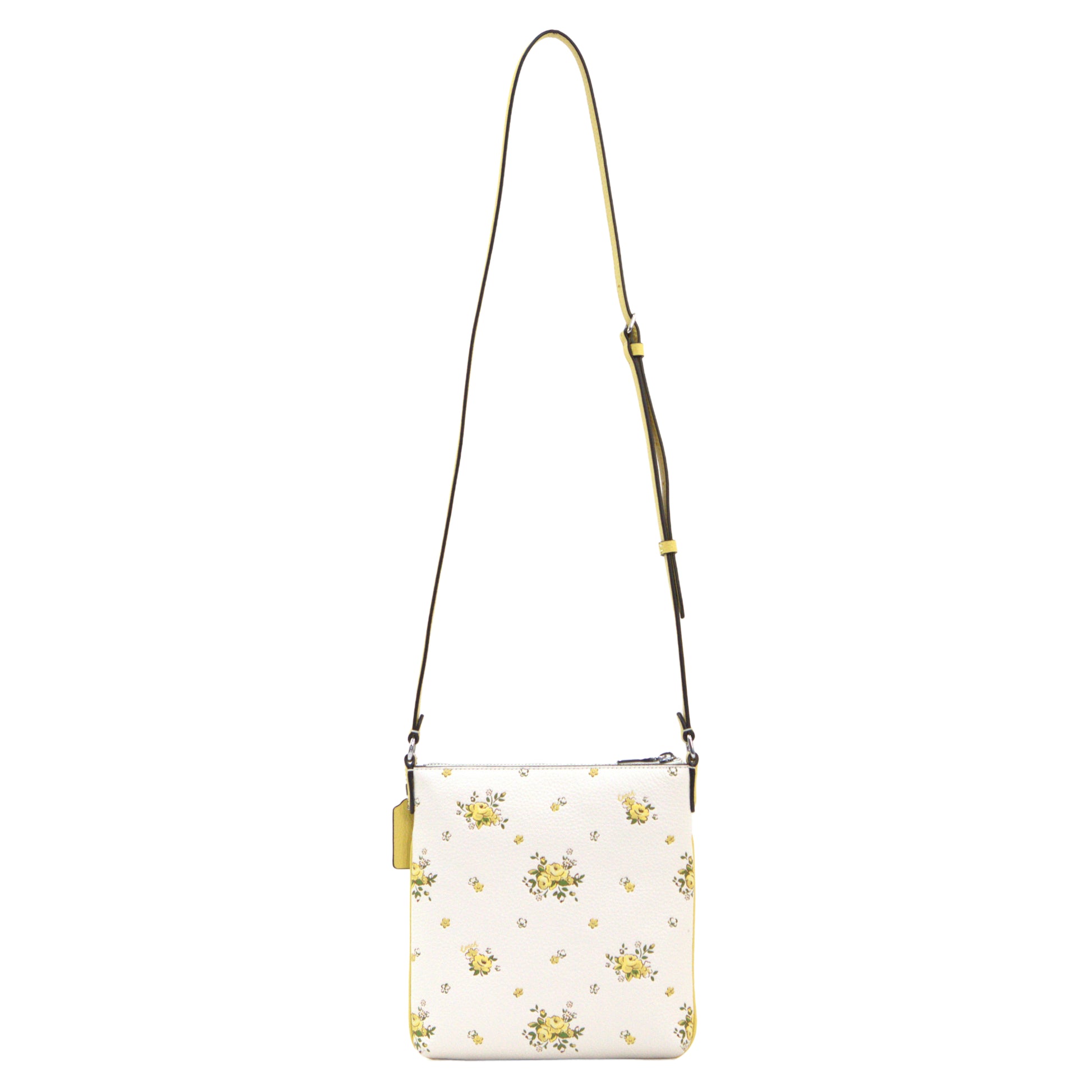 The Coach Mini Rowan With Floral Print in Chalk Multi adds a delicate, feminine touch to your everyday look. Crafted from refined pebble leather, this charming mini crossbody features a romantic floral print and offers a blend of style and practicality. With both interior and exterior pockets, plus an adjustable strap, it's a compact companion for effortless on-the-go organization.