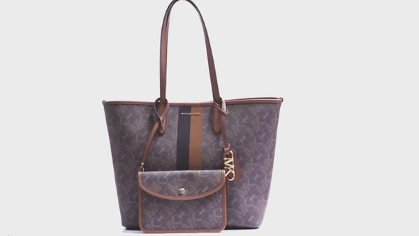 El bolso tote grande de cuero con logo Eliza de Michael Kors - Marrón combina sin esfuerzo la elegancia atemporal con la funcionalidad diaria. Es el compañero perfecto para trabajar, viajar o simplemente afrontar tus aventuras diarias con estilo.