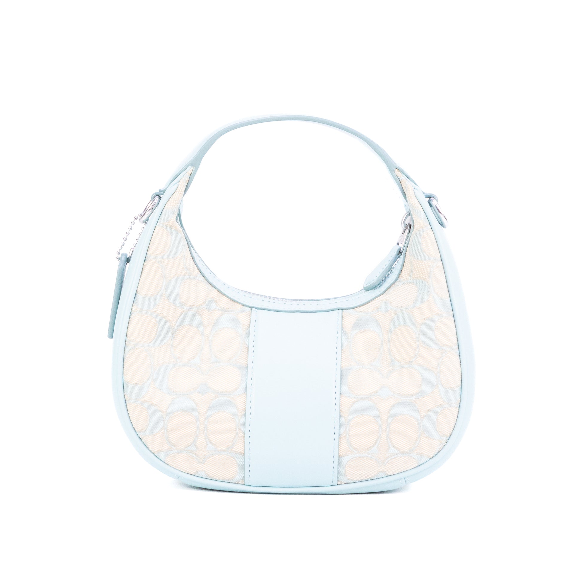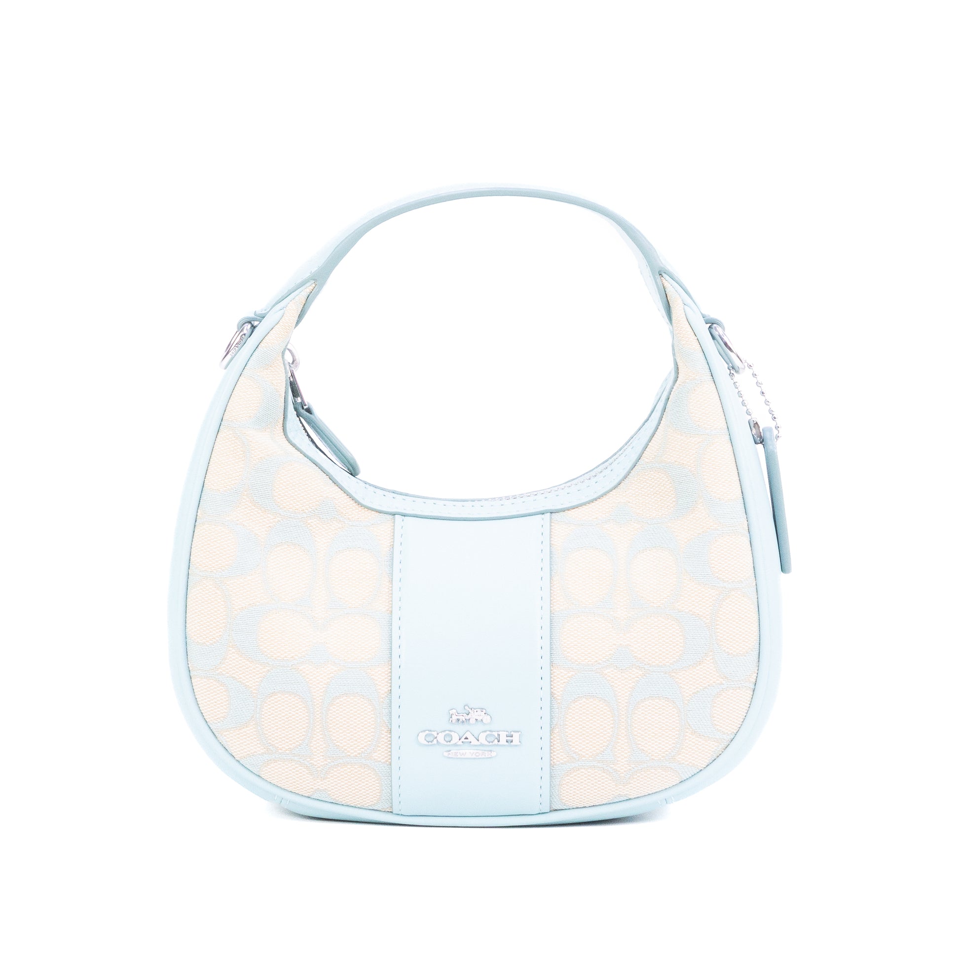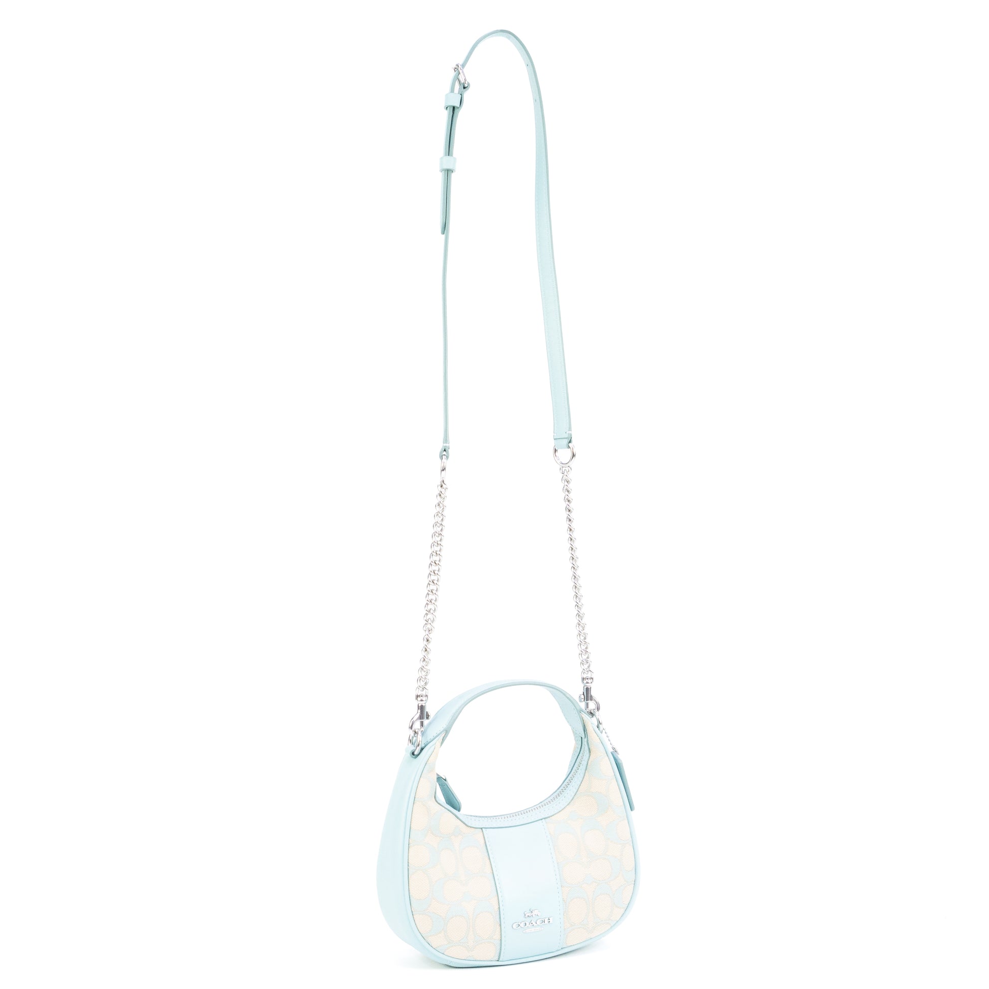 Add a touch of timeless style to your wardrobe with the Coach Carmen Mini Crossbody in Signature Jacquard - Faded Blue. This compact and versatile bag features a luxurious combination of signature jacquard and smooth leather, offering a sophisticated and sustainable option for carrying your essentials.