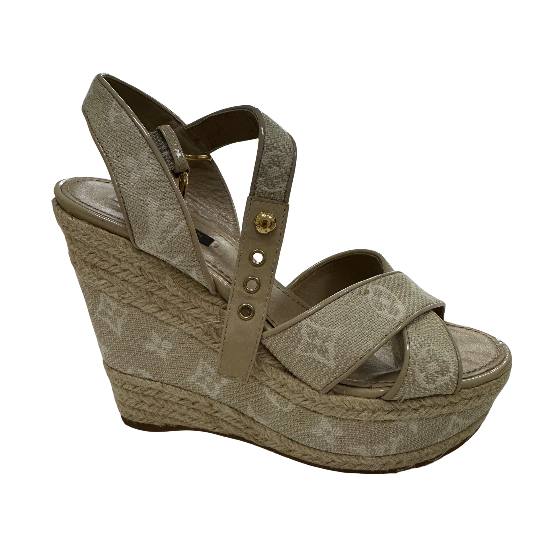 Louis Vuitton Canvas Monogram Nil Espadrille Wedge Sandals