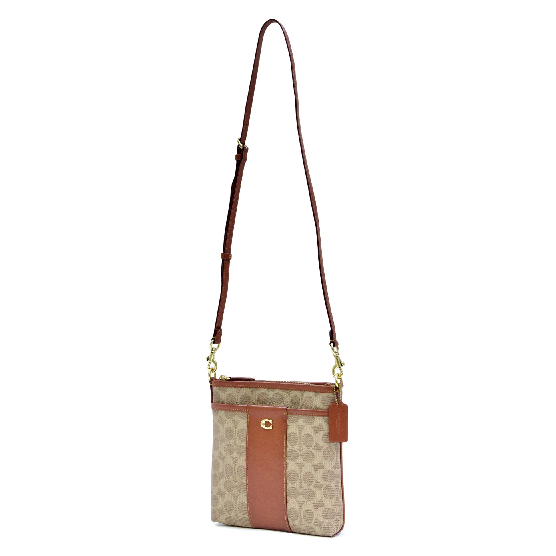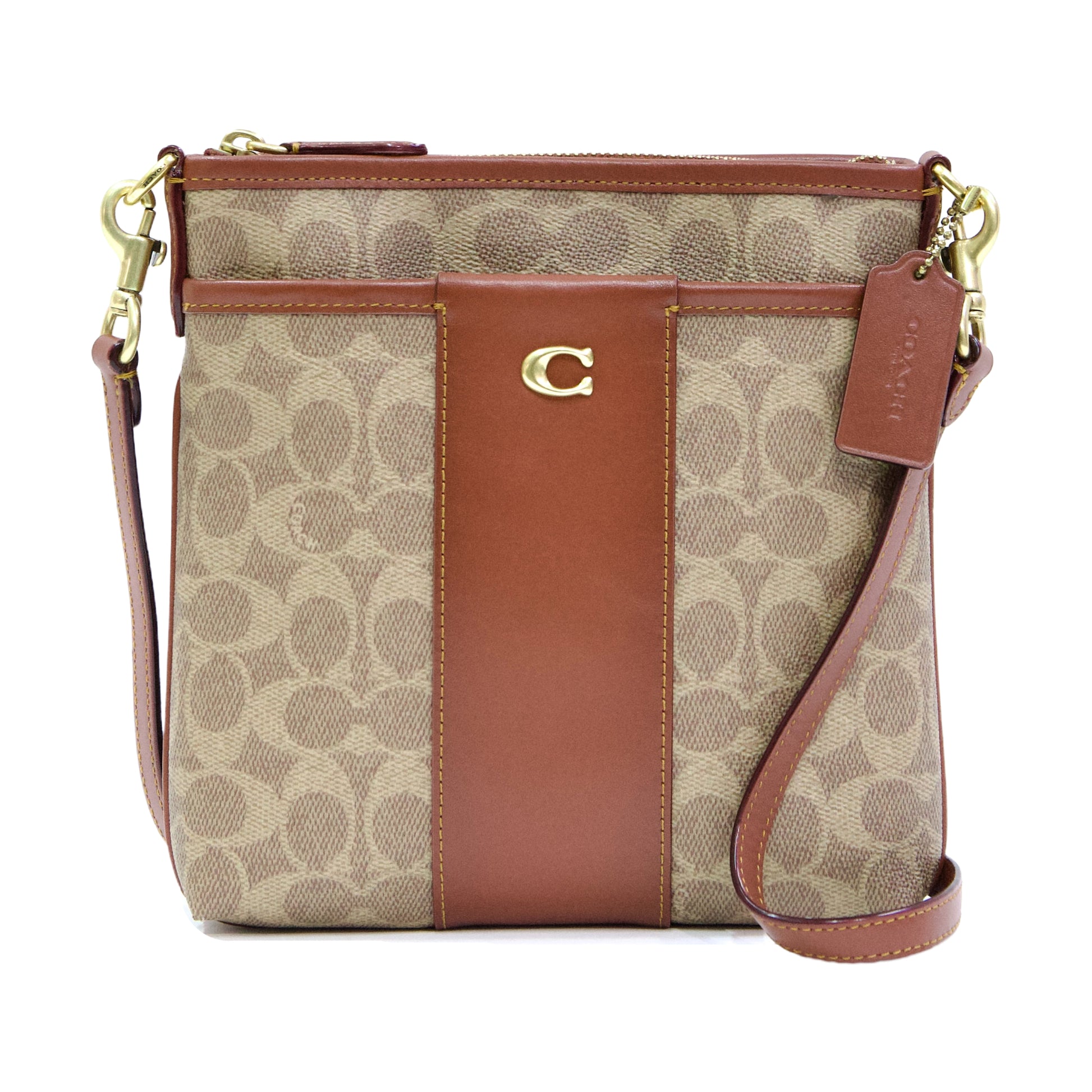 Refined and effortlessly stylish, the Coach Color-Block Coated Canvas Signature Kitt in Tan Rust blends iconic branding with practical design. Perfect for everyday outings, this sleek crossbody offers just the right amount of space with timeless Coach appeal.
