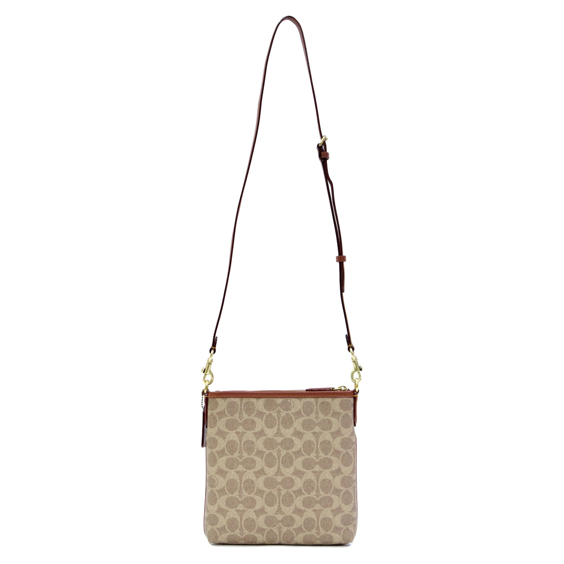 The Coach Color-Block Coated Canvas Signature Kitt - Tan Rust is a timeless and compact piece that combines luxury and functi
