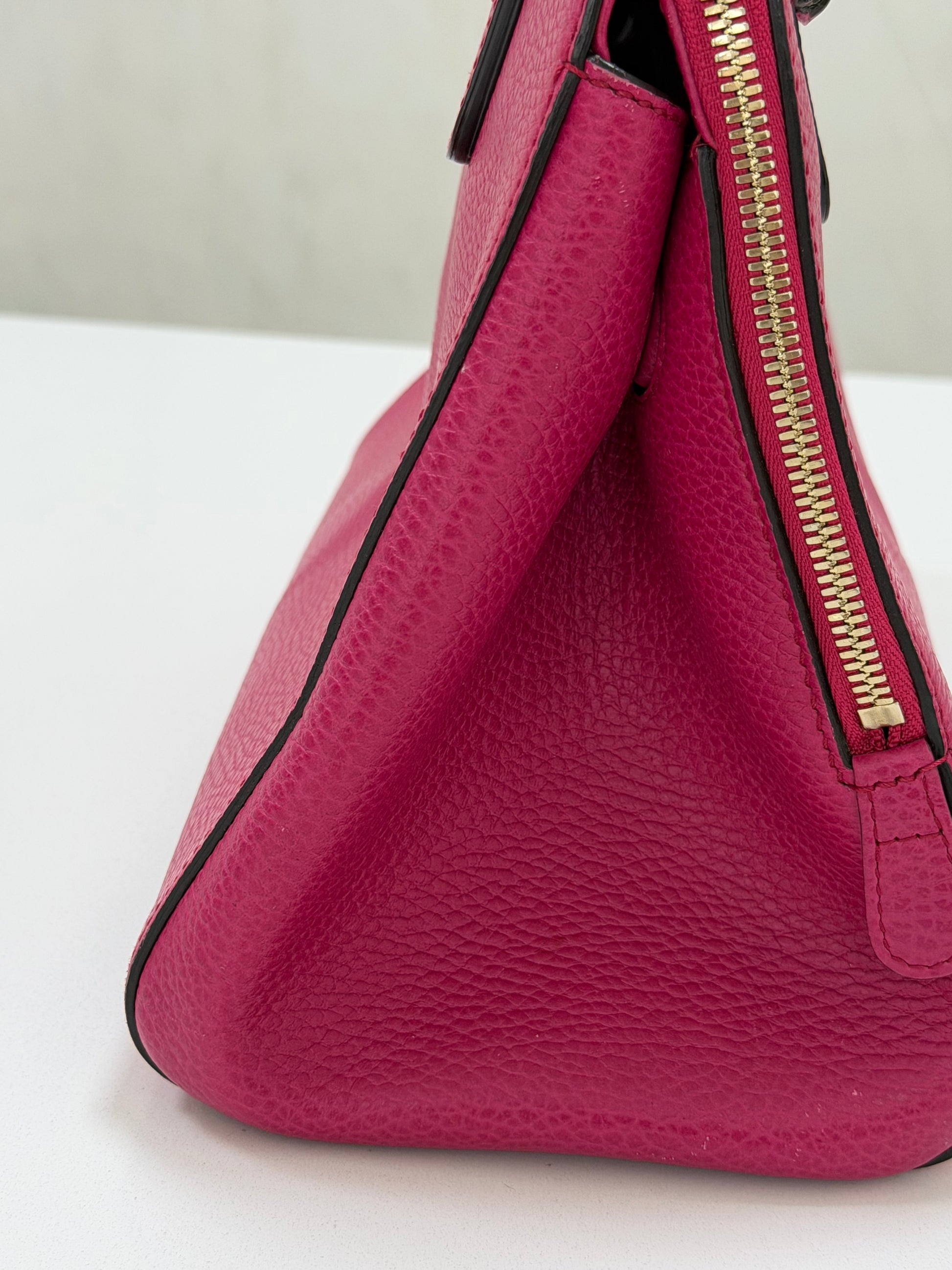 • Flat Leather Top Handles: The structured top handles provide comfortable hand-held wear.