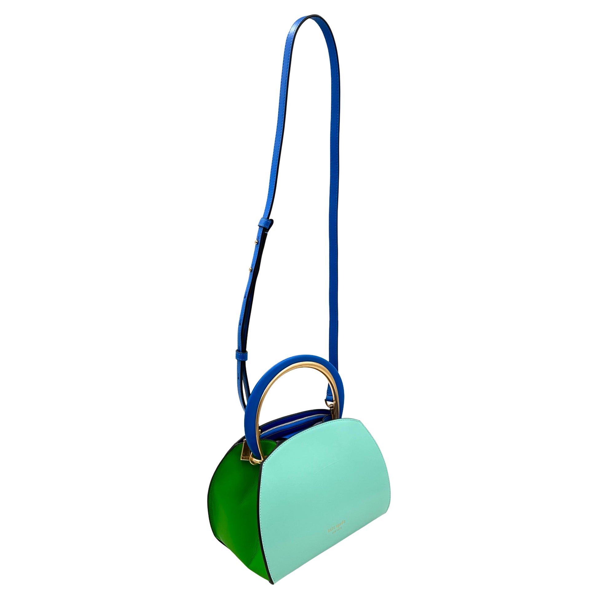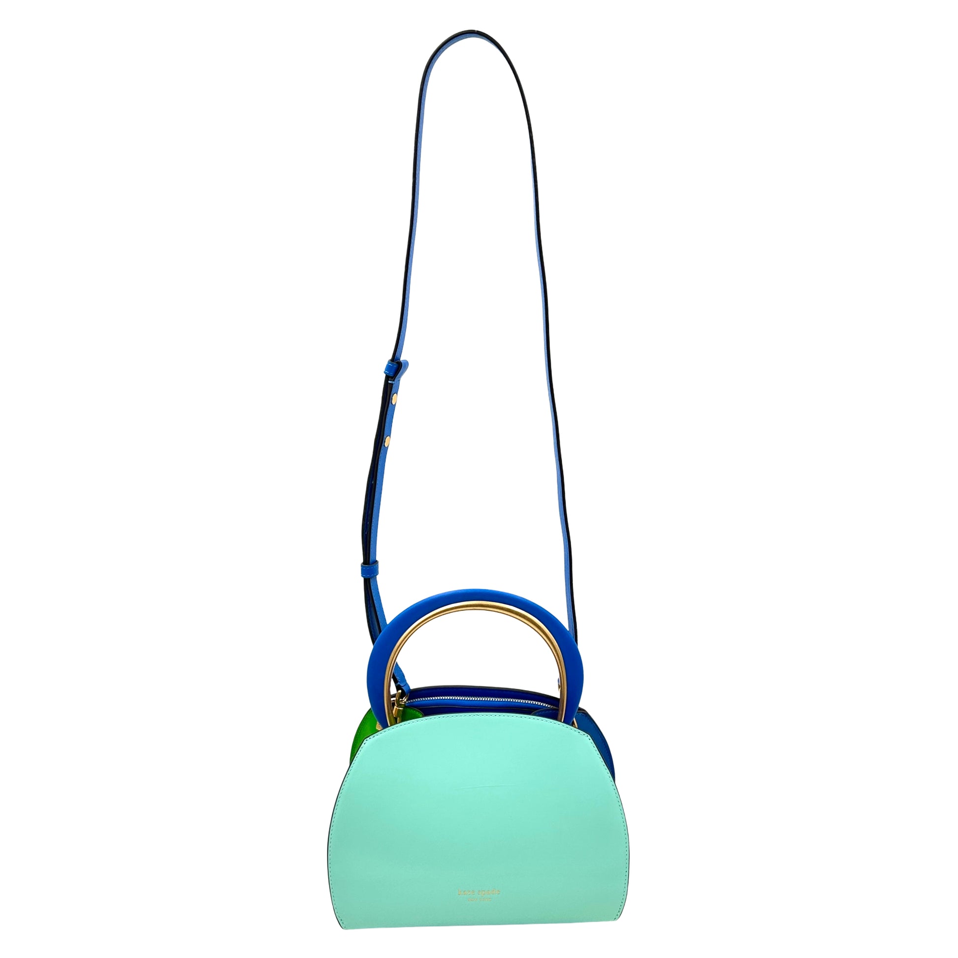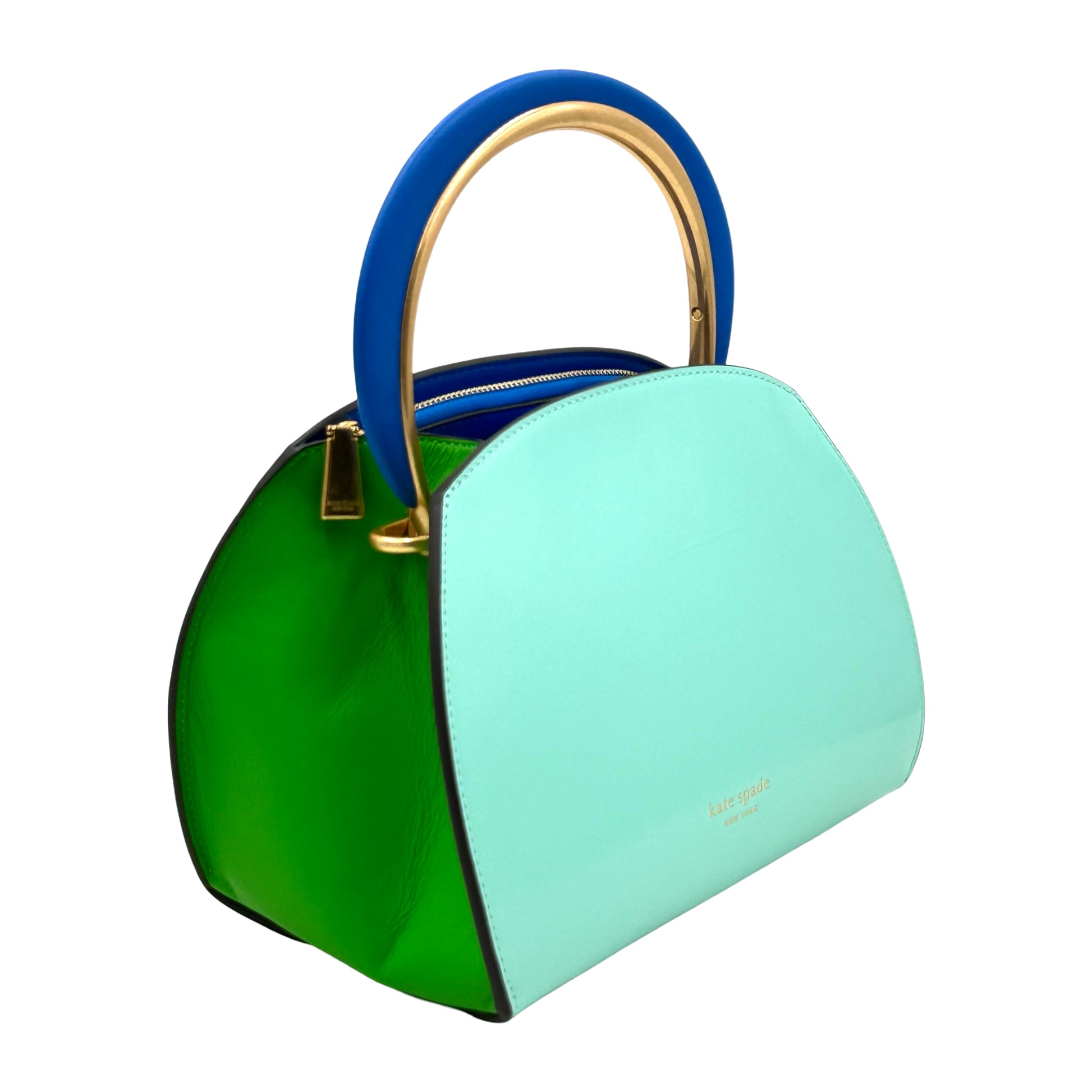 Make a bold statement with the Kate Spade Expo Colorblocked Top-handle Satchel in Mint Lique. Featuring a vibrant blend of mint, blue, yellow, and green, this chic satchel captures retro charm and modern sophistication in one compact silhouette.