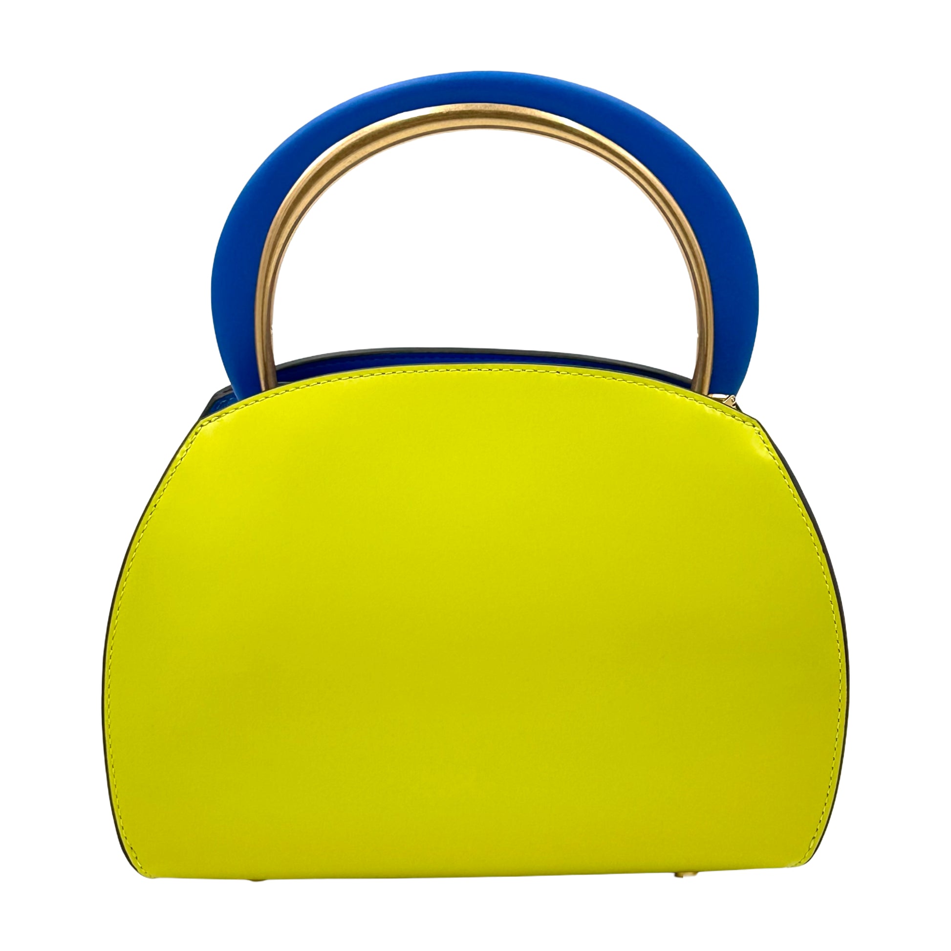 Top Handle Detail: Features a classic blue leather top handle for a structured, elegant carry option.