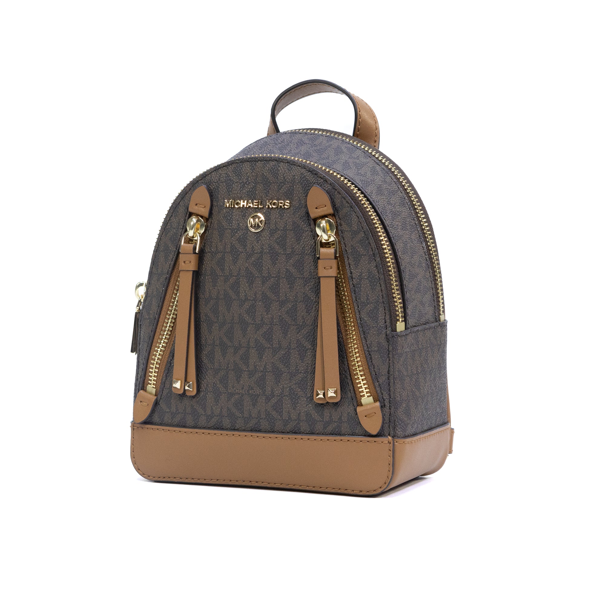 The Michael Kors Brooklyn Signature Extra Small Messenger Backpack is a stylish and functional accessory that combines fashion and practicality. This compact backpack features a signature logo print and a sleek design, making it perfect for everyday use.