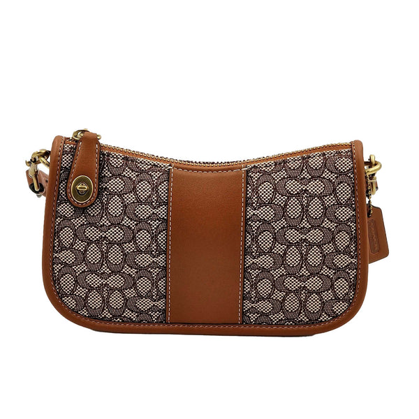 Introducing the Coach Women's Swinger in Micro Signature Jacquard - Brown, a chic and compact accessory that effortlessly combines micro signature jacquard with glovetanned leather. This stylish Swinger is designed to elevate your fashion while providing convenient functionality.
