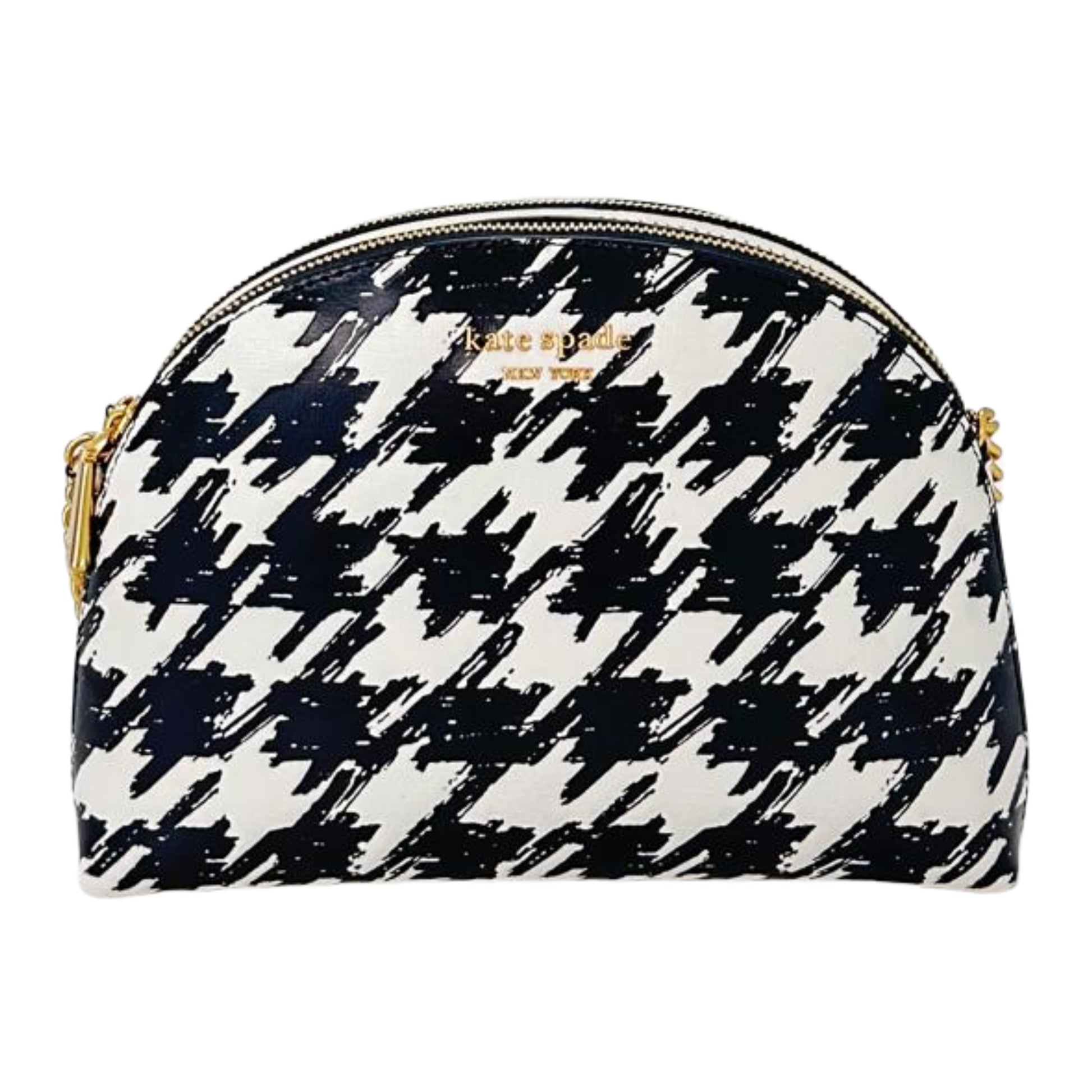 Kate Spade Morgan Leather Painterly Houndstooth Crossbody - Black White Gold