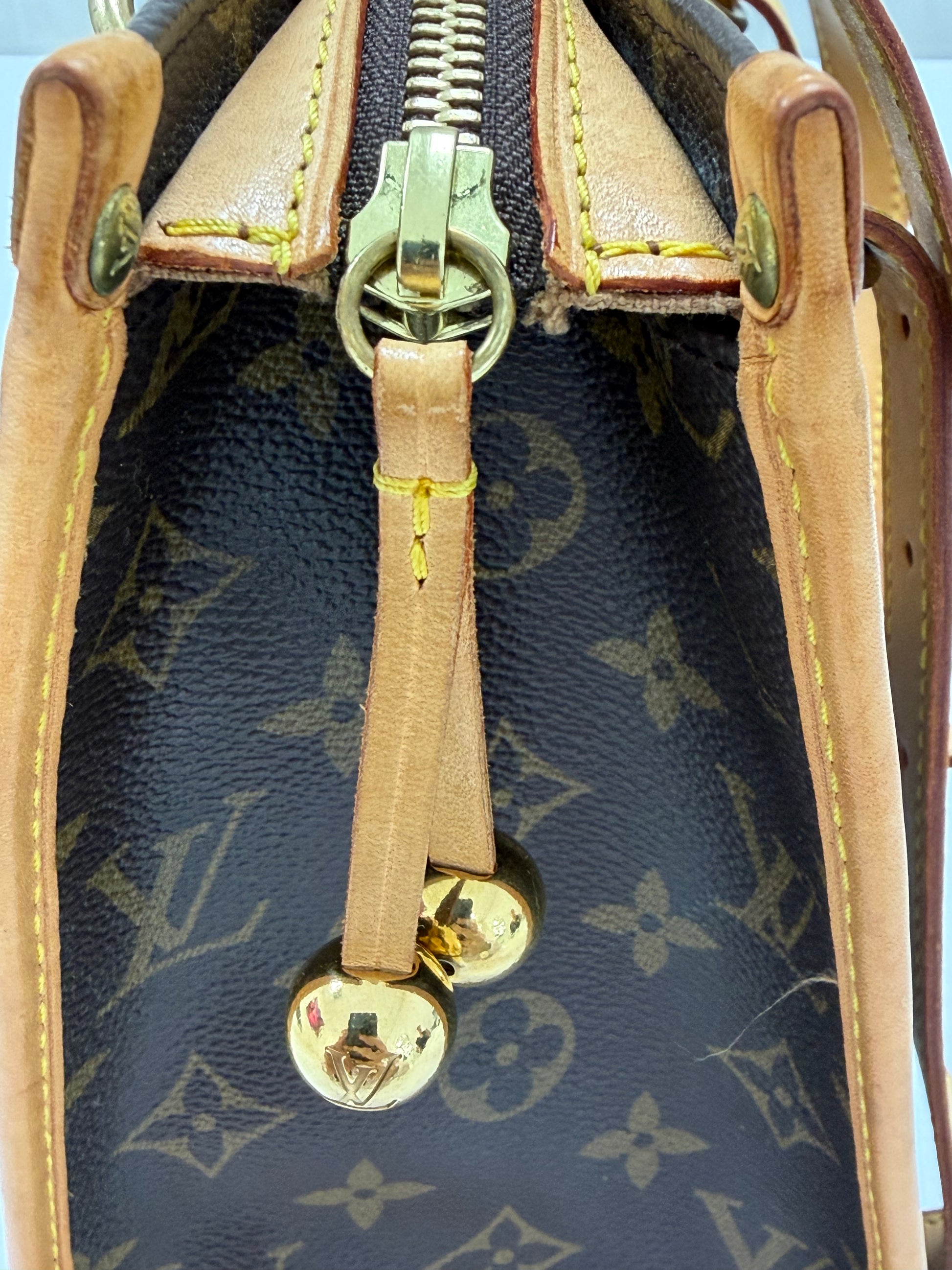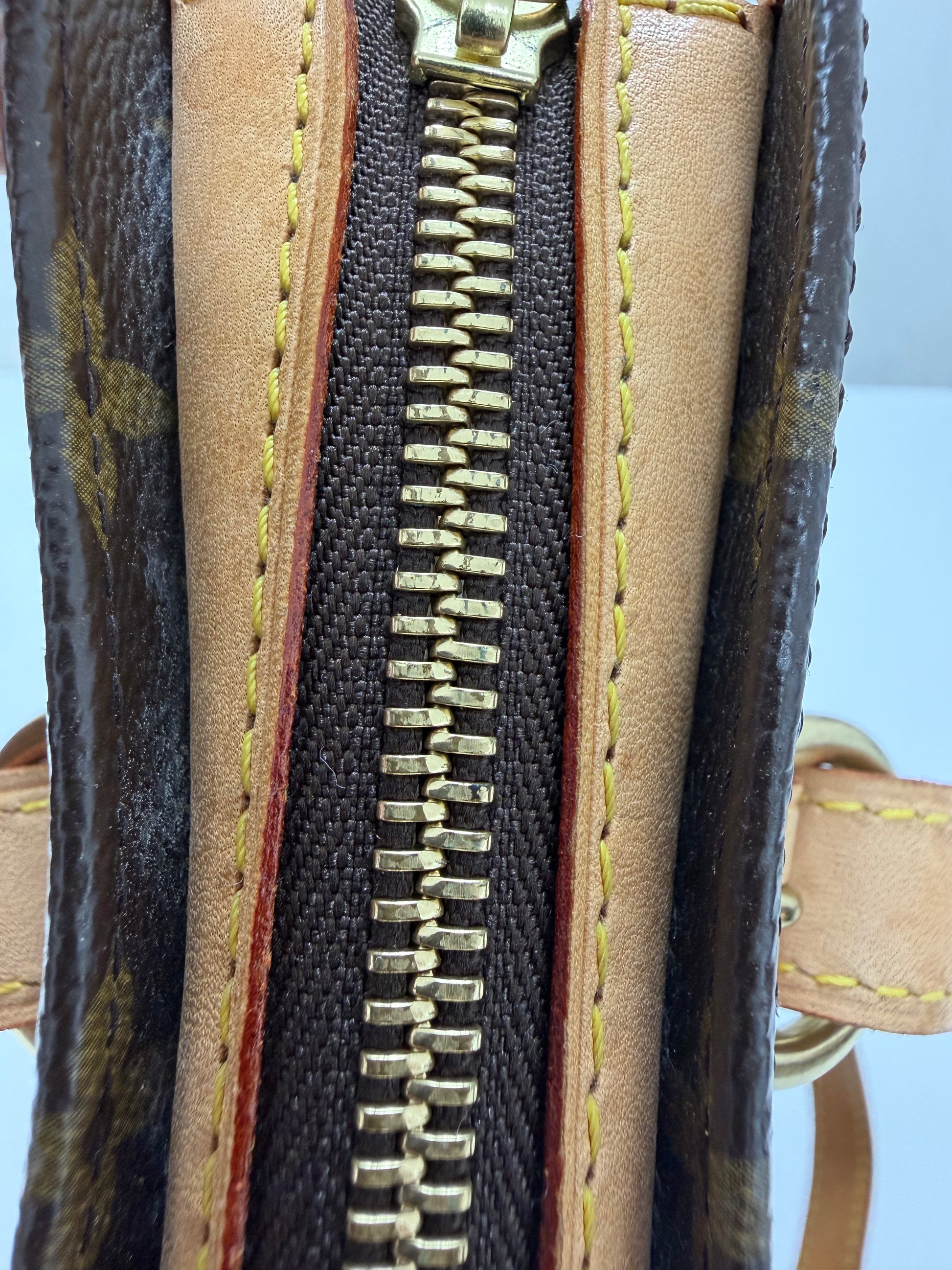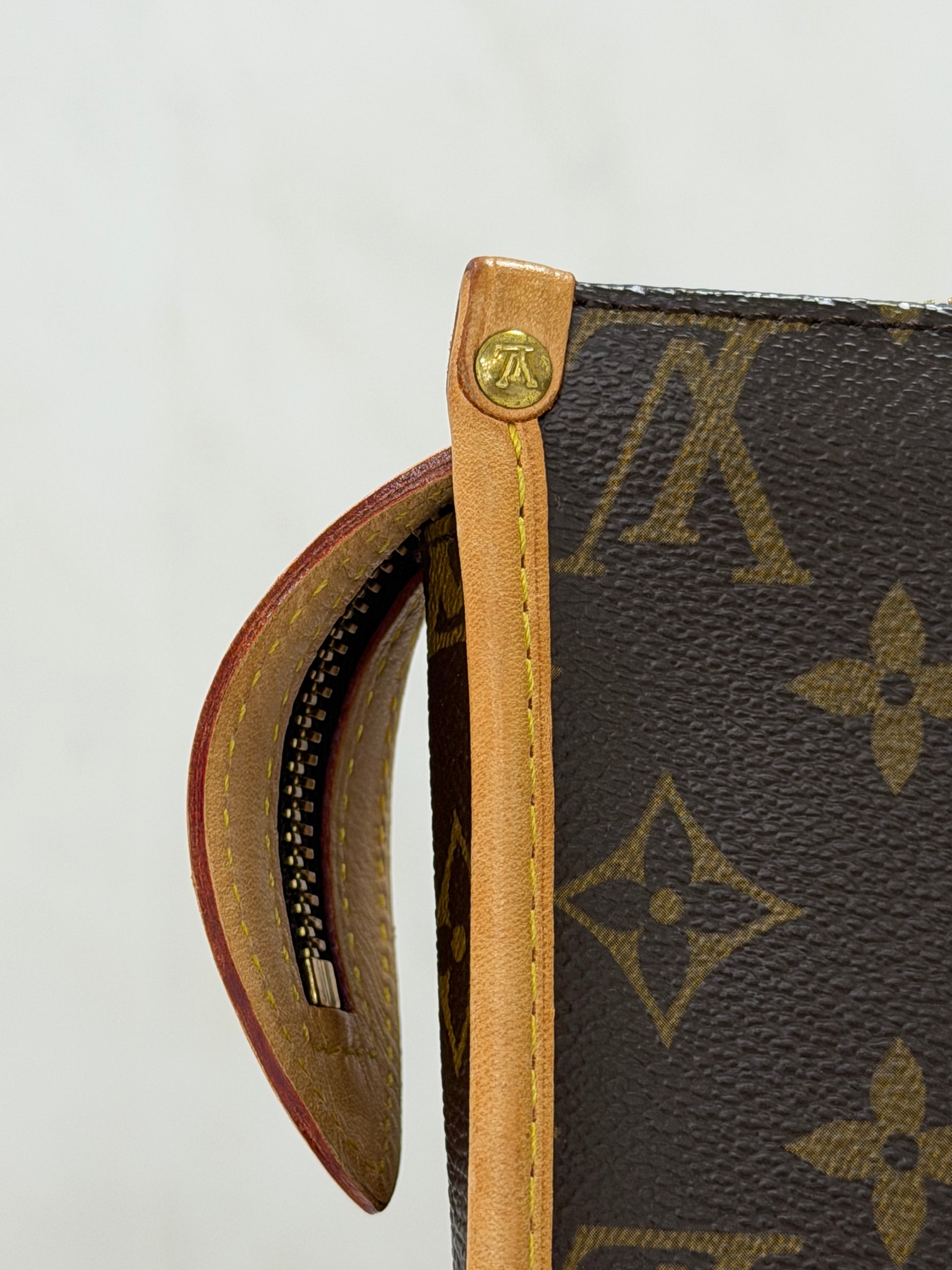 Premium Monogram Canvas and Leather: Crafted from Louis Vuitton’s iconic coated canvas with leather accents, offering durability and timeless style.