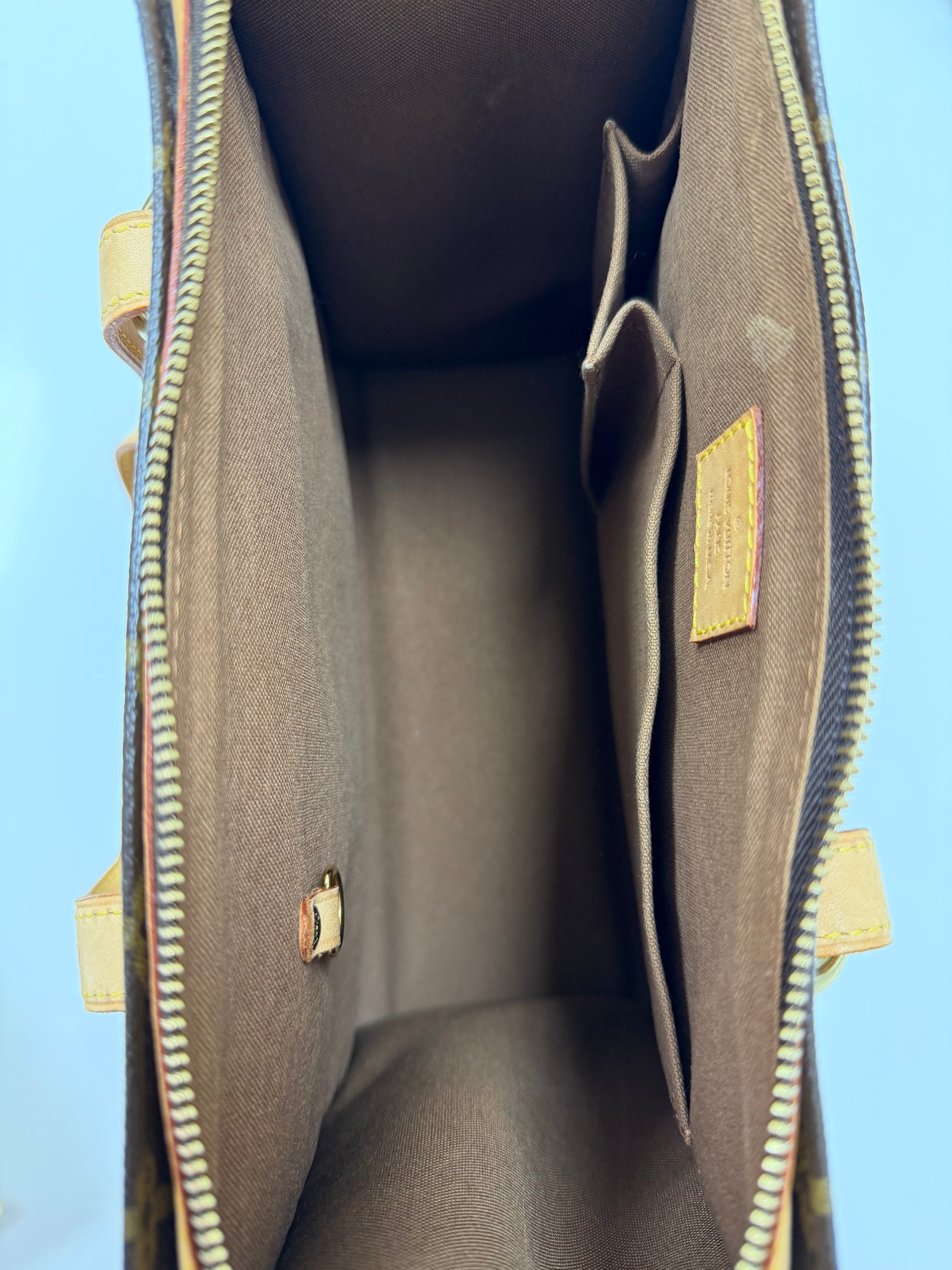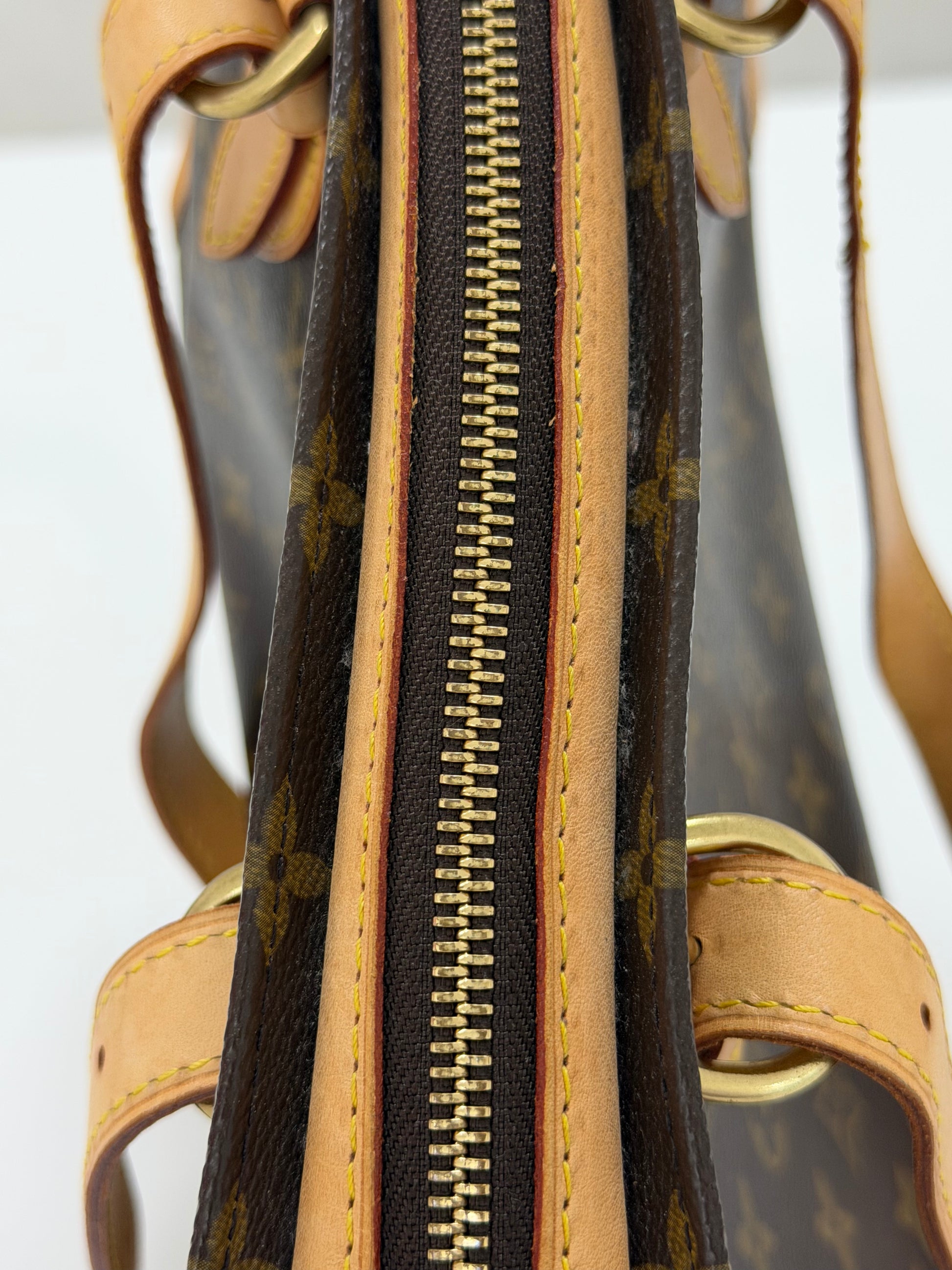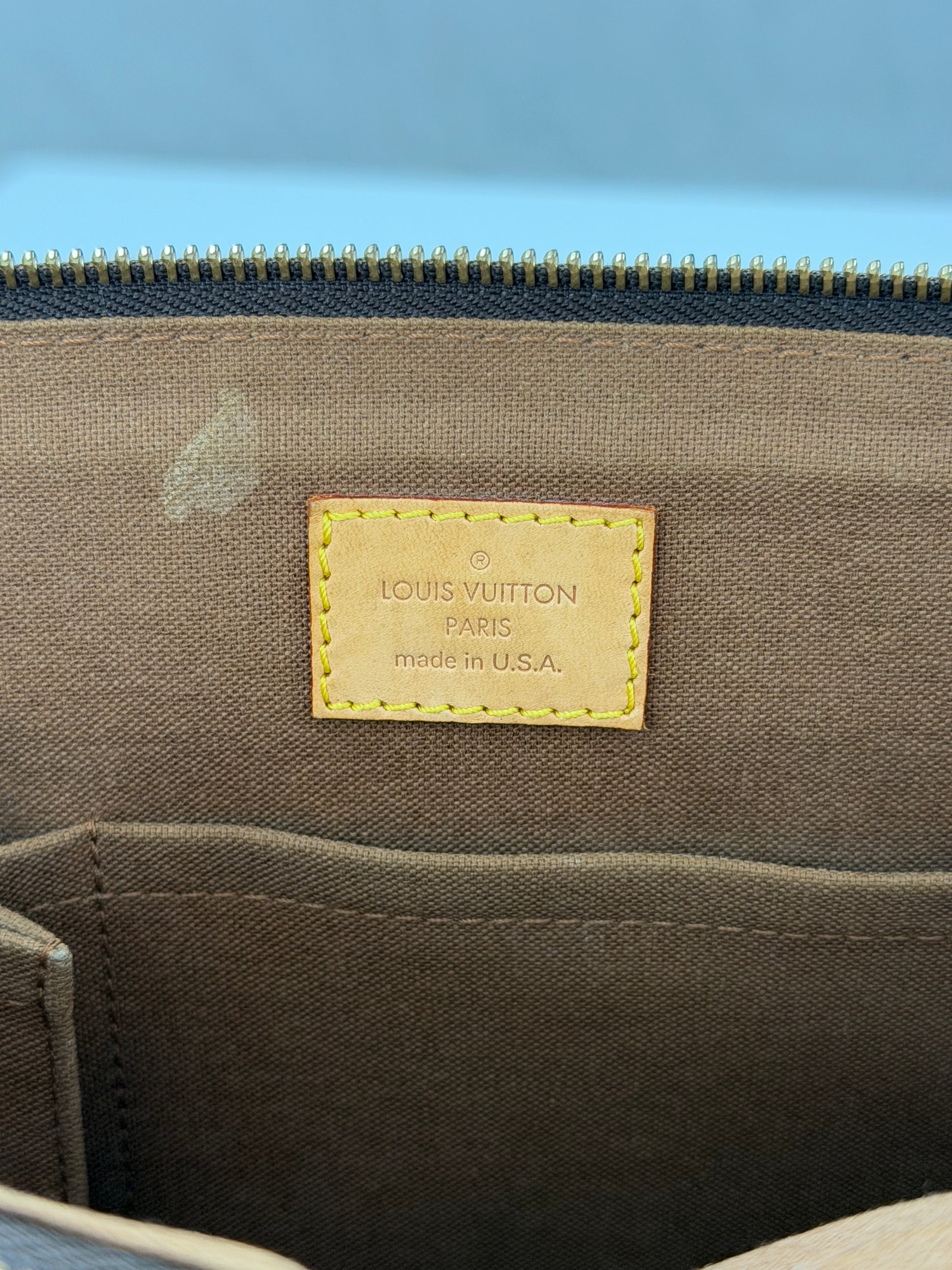 Premium Monogram Canvas and Leather: Crafted from Louis Vuitton’s iconic coated canvas with leather accents, offering durability and timeless style.