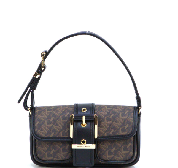 The Michael Kors Colby Extra Small Pouchette in Brown/Black is a stylish and compact accessory perfect for carrying your essentials. Crafted with logo-print canvas and leather trim, this pouchette is ideal for both casual and evening wear, combining elegance with practicality.