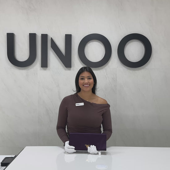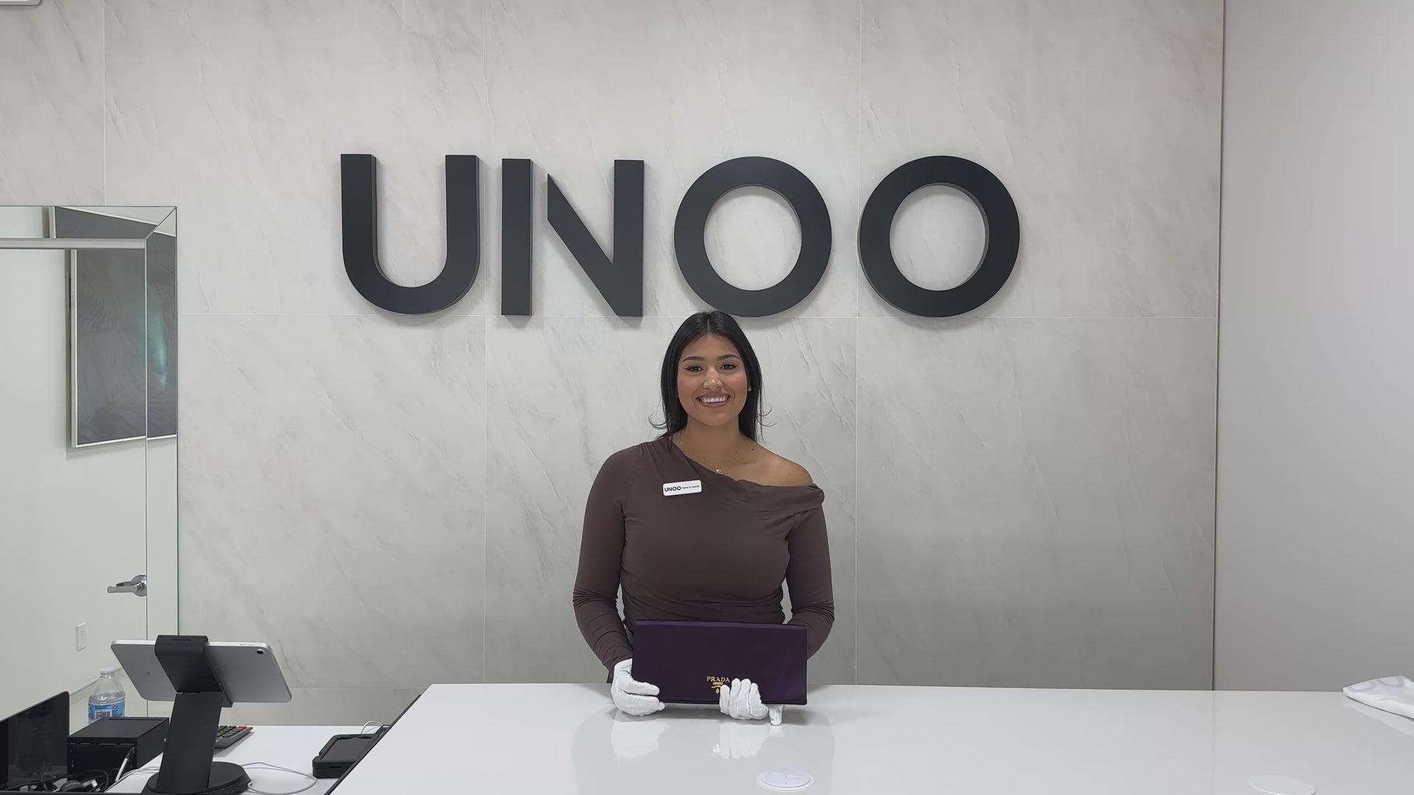 Gold-Tone Hardware: The signature Prada branding and hardware in gold-tone bring a luxurious contrast to the deep satin fabric.