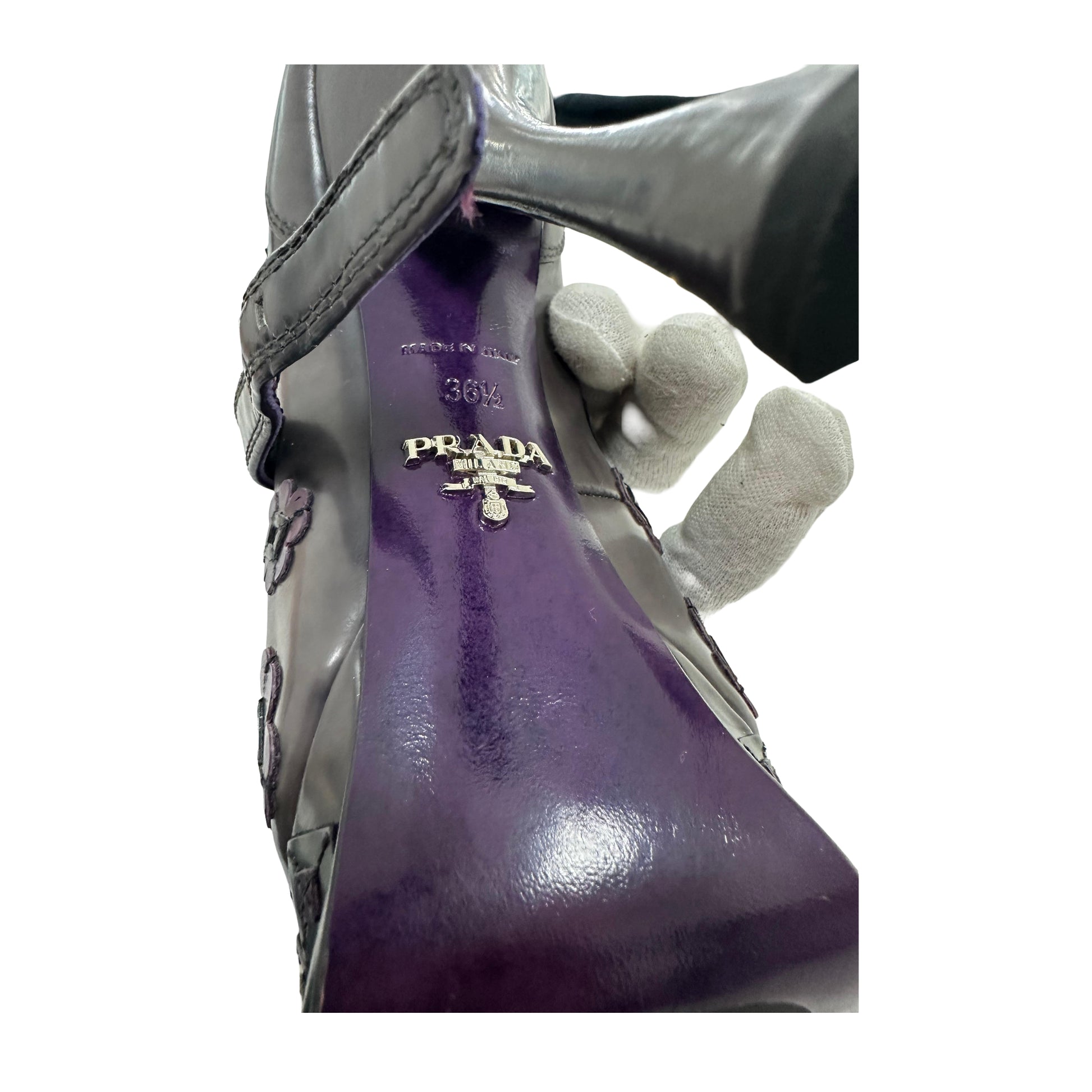 Prada Mary Jane Spazzolato Flower Platform Pumps Violet -Pre Owned
